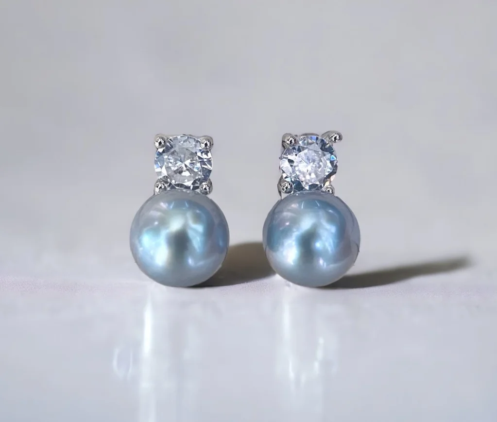 Customized 5-6mm Sea Pearl Natural Grey Pearl Madams Akoya Pearl Earring for Women Gift Daily Wear