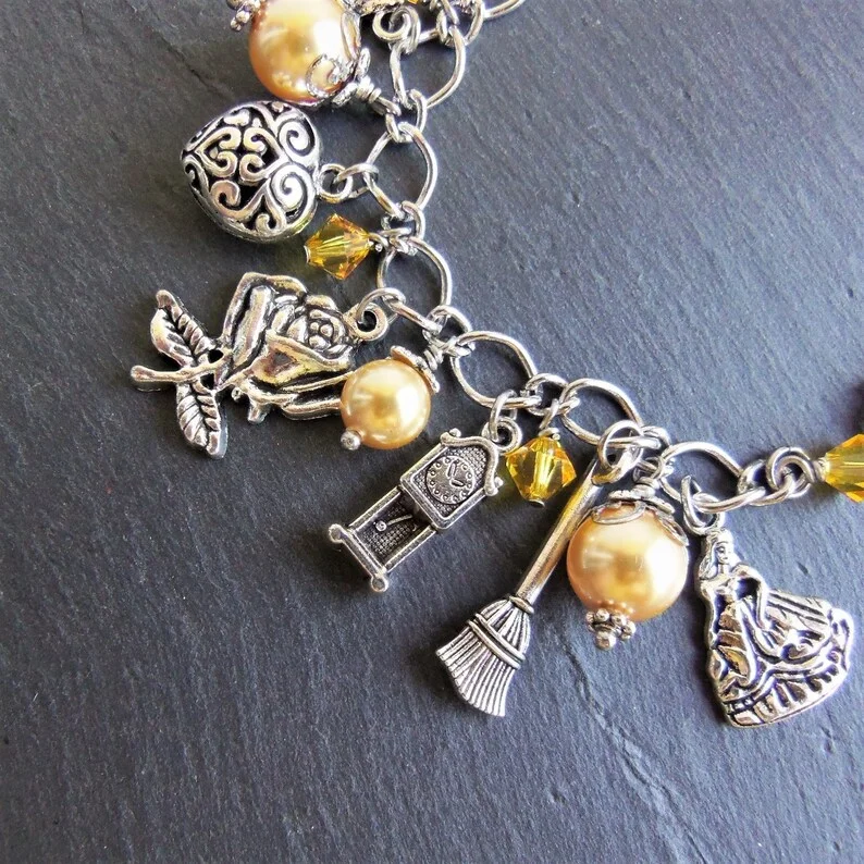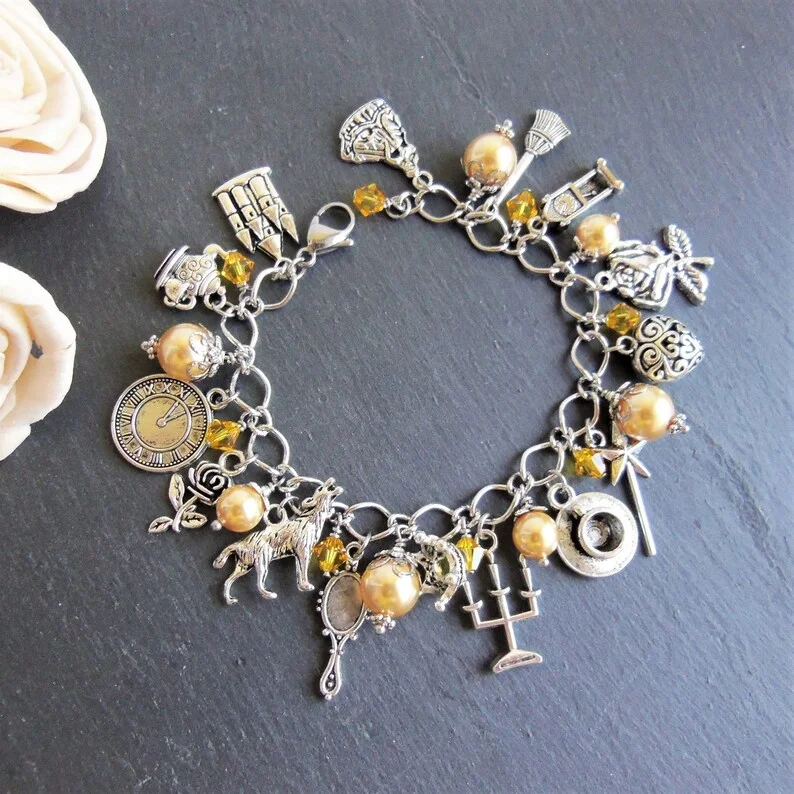 Costume Jewelry Beauty and Beast Romantic Silver Chain Crystal Crown Bangle New Beauty and the Beast Bracelet for Gift