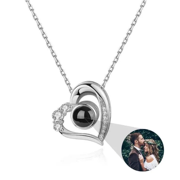 Customized 925 Sterling Silver Hot Sale Heart Pendant Zircon Necklace with Photo Projection for Friend