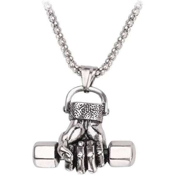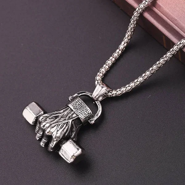 Custom Brass Punk Retro Necklace Jewelry High Quality Antique Silver Gym Dumbbell Pendant Necklace