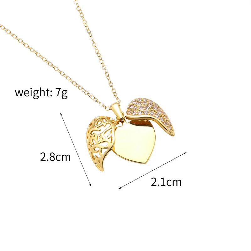 Custom Stainless Lucky Heart Angel wings Necklace for Women