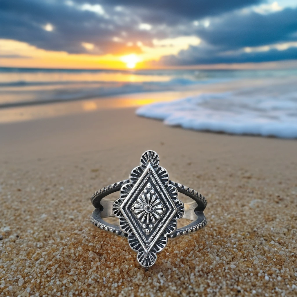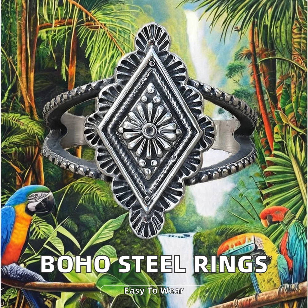Vintage Geometric Bohemian Pattern Stainless Steel Wedding Rings Men Women Classic Styling Engagement Party Christian Religious