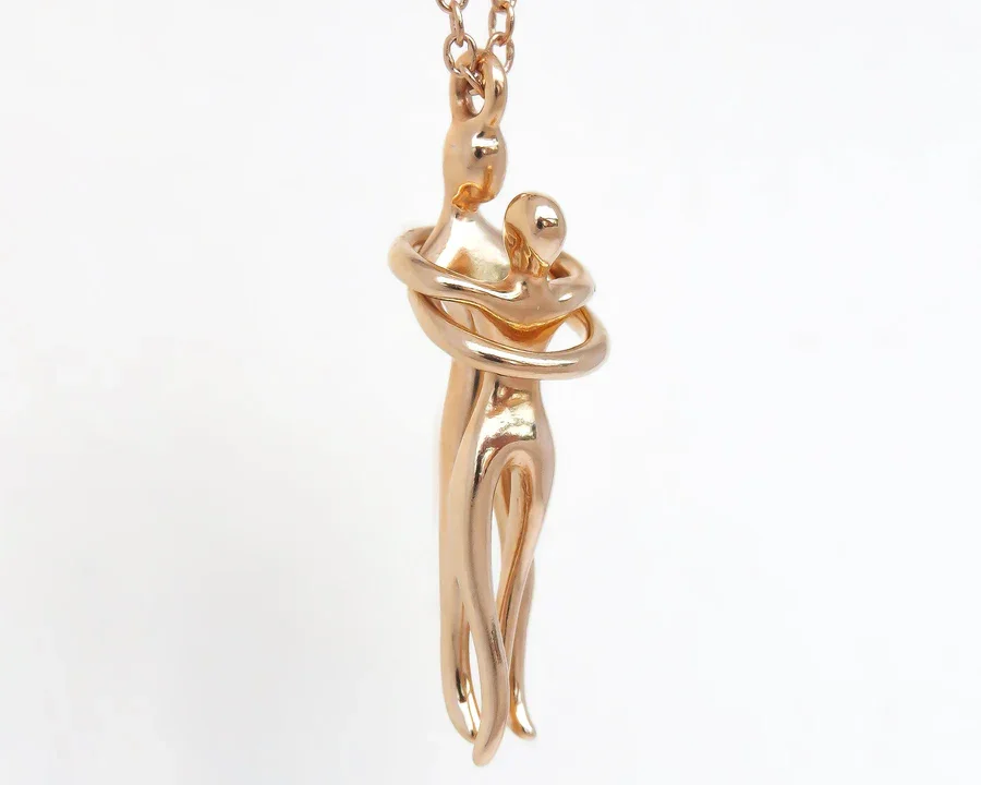 Custom Stainless Steel Couple Hugging 18K Gold Couple Pendant Necklace