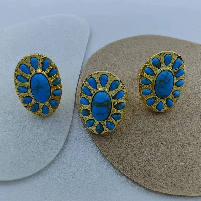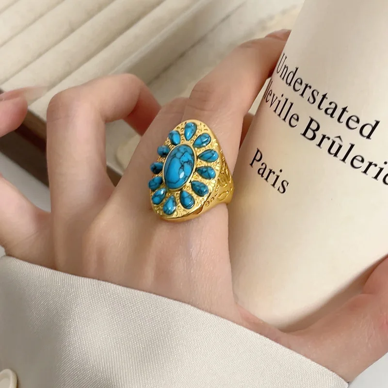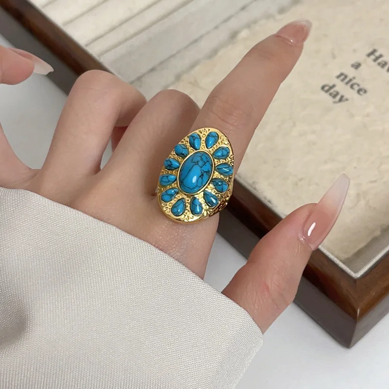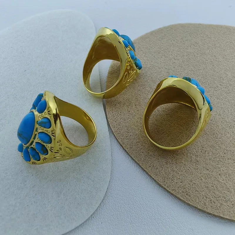 Factory Wholesale Jewelry Real Gold Plated Antique Turquoise Custom Stone Ring