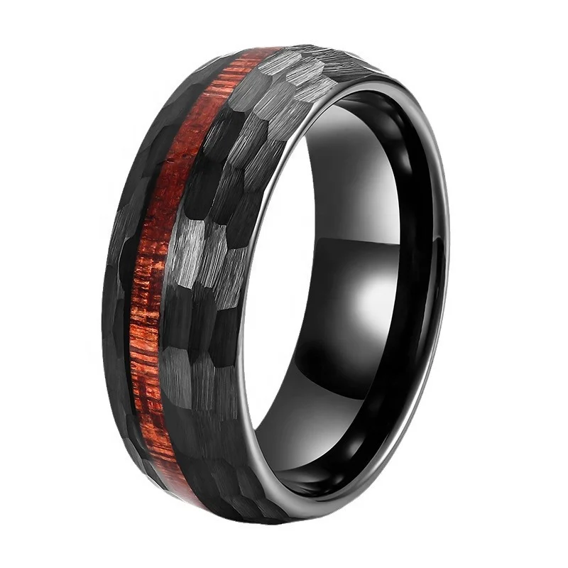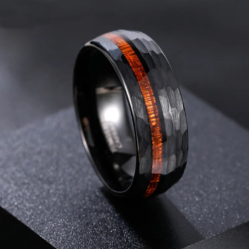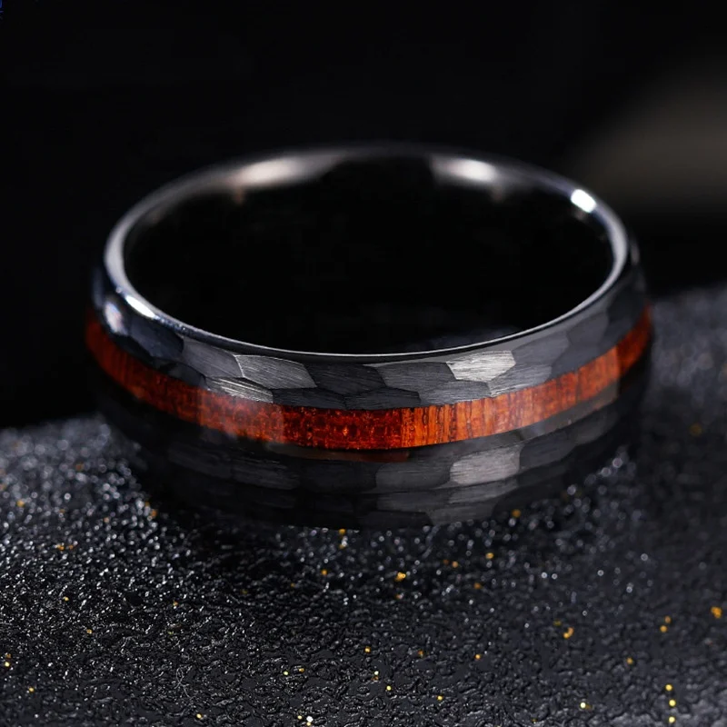 Fashion Jewelry Wooden Ring Handmade Hammer Rings Wide Band Tungsten Carbide Ring for Men