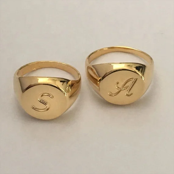 Eco Brass Letter Initial Jewelry Customize Stainless Steel Signet Fashion Custom Ring PVD Gold Plated Jewelry Custom