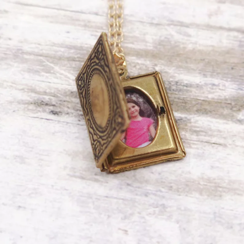 Custom Jewelry Retro Vintage Photo Literature Paper Locket Pendant Old Gold Plated Book Locket Necklace
