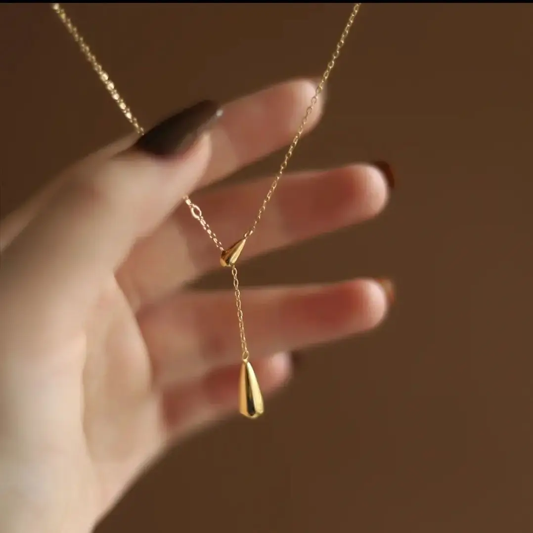 Fashion Women Jewelry High Quality Gold Plated Stainless Steel Pendant Water Drop Necklace