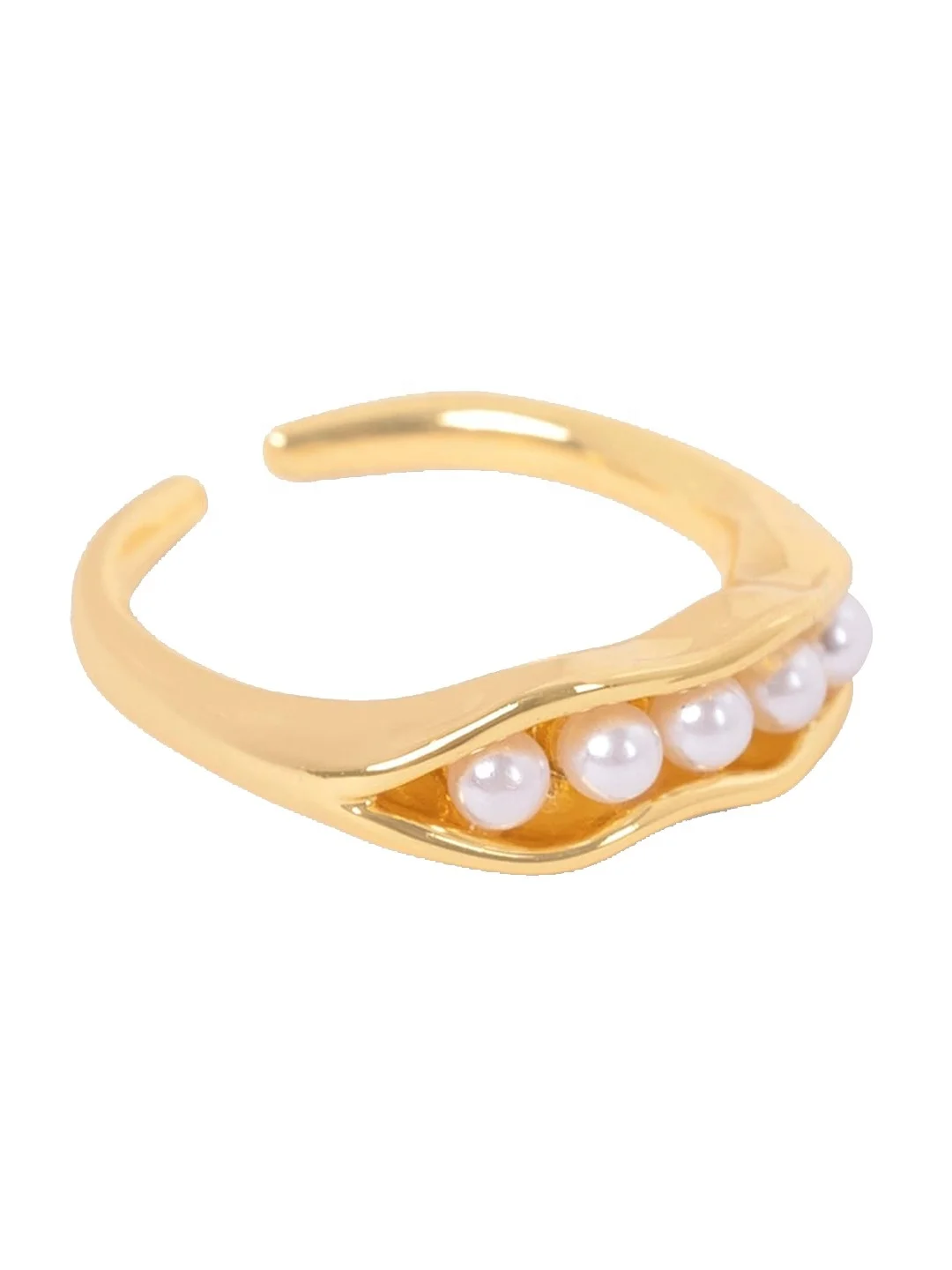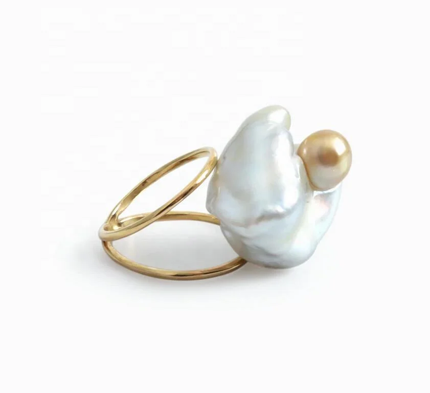 Women Gold Plated Jewelry Fashion Shell Bead Freshwater Pearl Ring