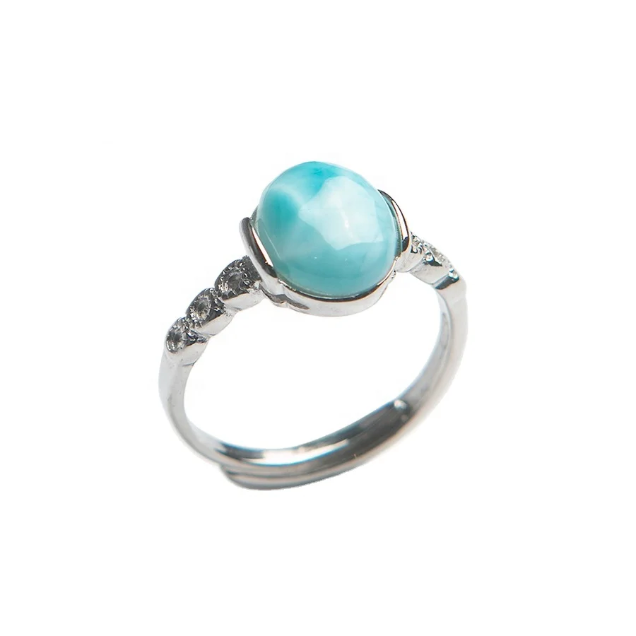 Wholesale High Quality 925 Sterling Silver Precious Natural Gemstone Blue Larimar Jewelry Silver Men Ring