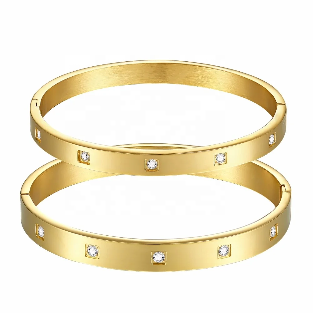 New Fashion Lady Titanium Steel Bangle Classic 14K 18K Gold Plated Jewellery 304 316 Stainless Steel Bangle for Women
