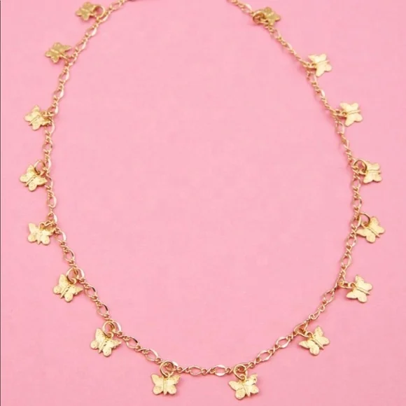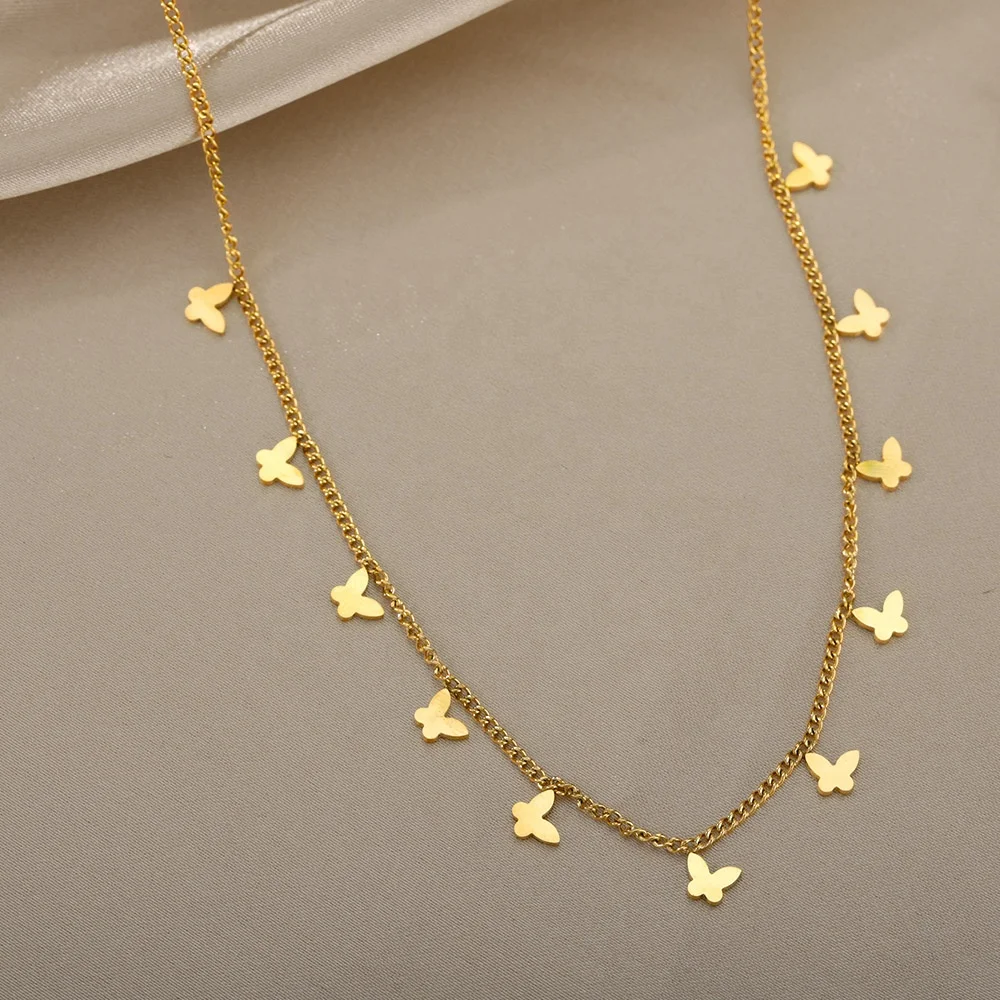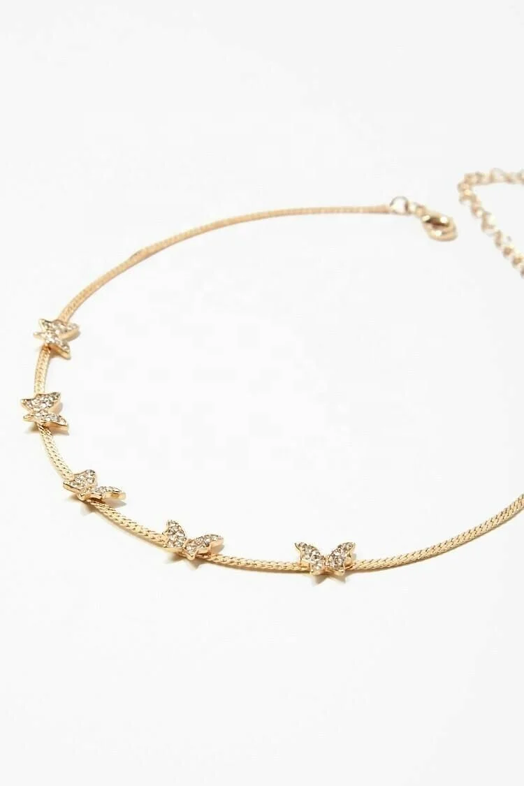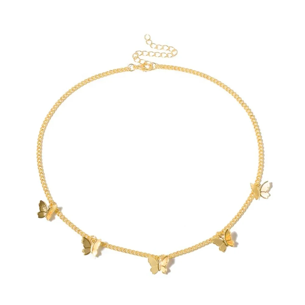 Wholesale Chain Necklaces for Women Jewelry Fashion Real 18k Yellow Gold Plated Dainty Charms butterfly Choker Necklace