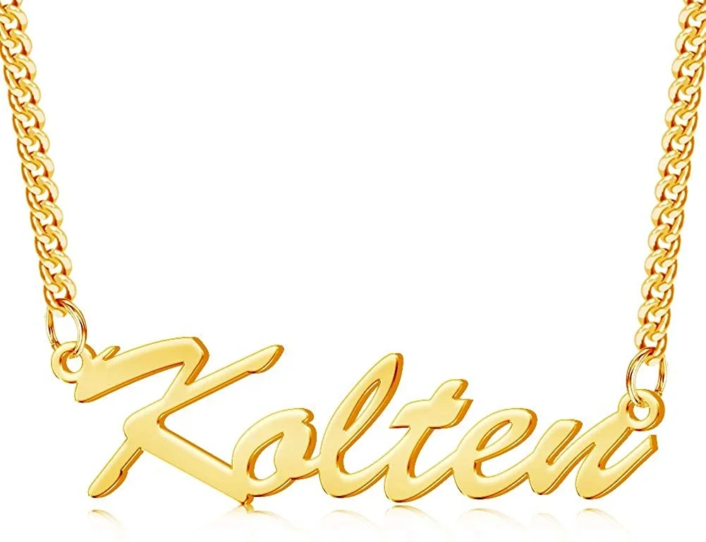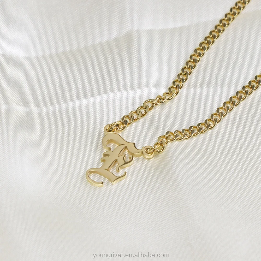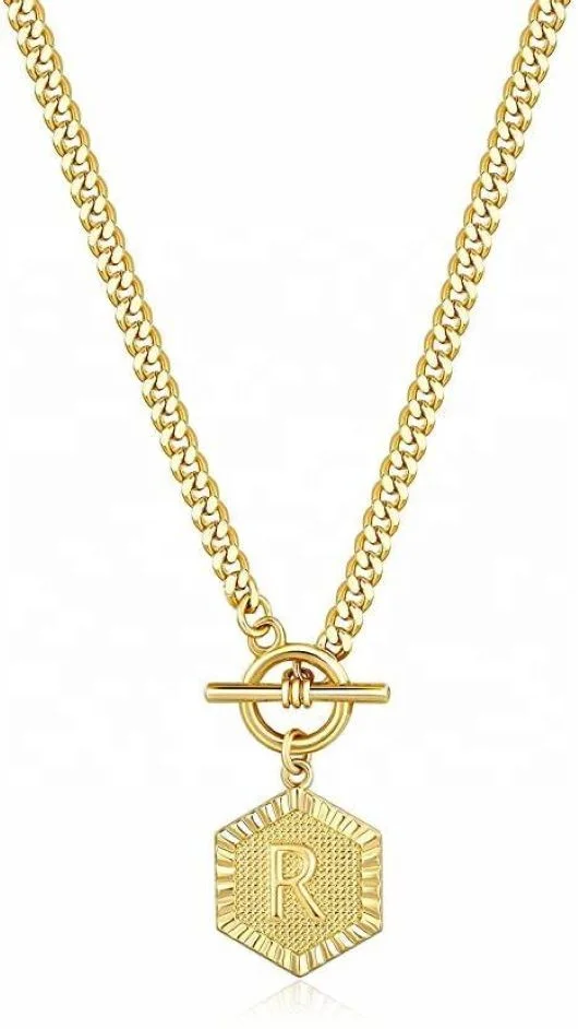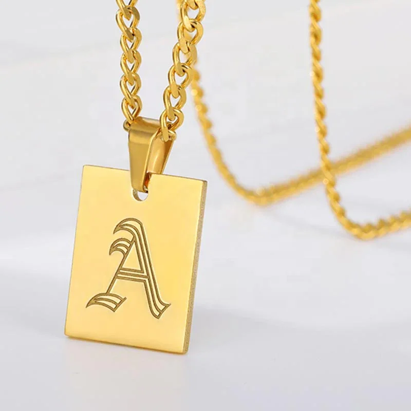 Manufacturer Rectangle Pendant Fashion Real 18k Yellow Gold Plated Hip Hop Cuban Link Initial Necklace Letter