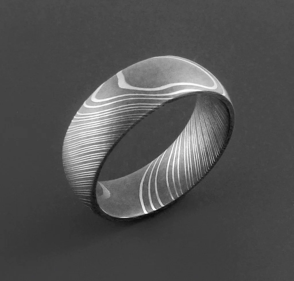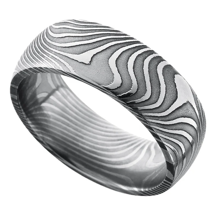 Customized High Quality Unique Domed Twisted Patterned Damascus Steel Men Ring