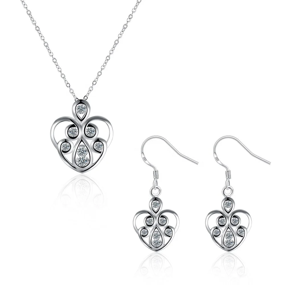 Wholesale Sterling Silver Jewelry Set Zircon Women Fashion 2022 Earrings and Necklace
