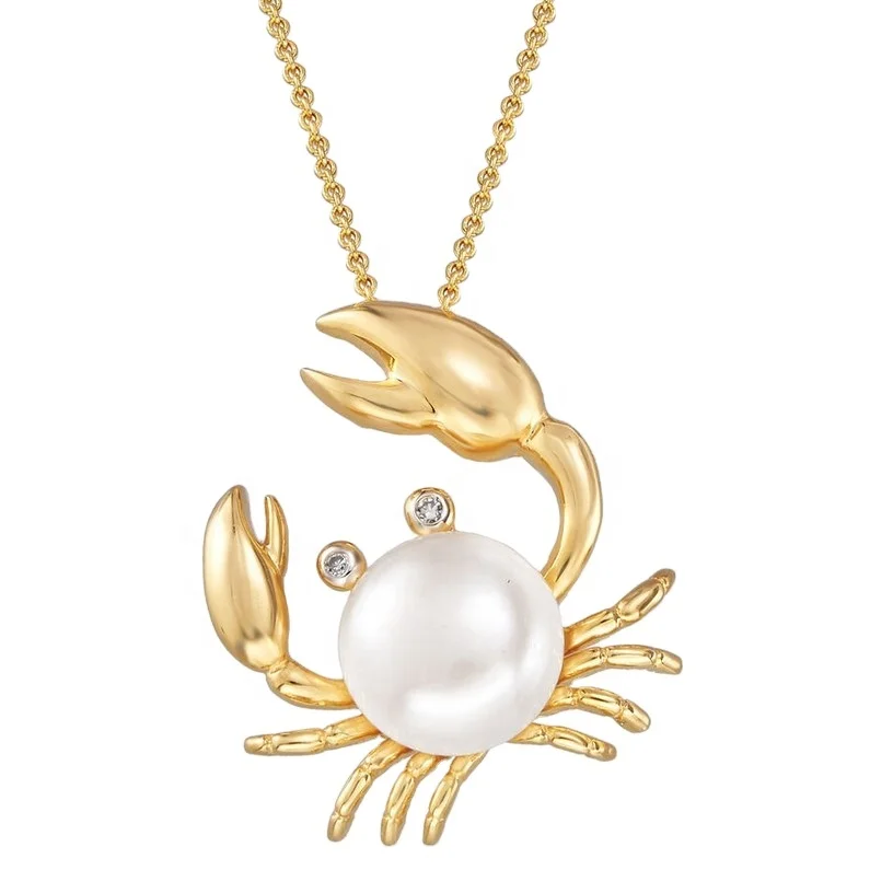 14K Gold Zircon Pearl Necklaces Custom Jewelry Necklace Crab Necklace