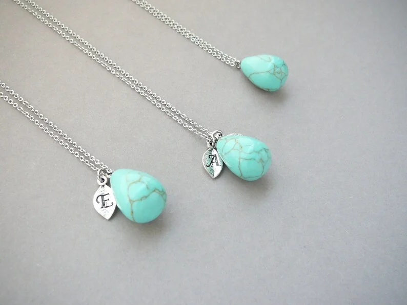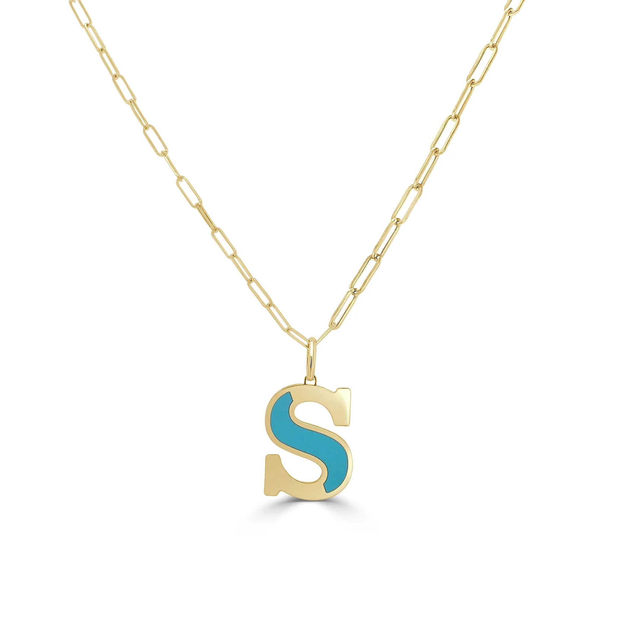 Wholesale Fashion Jewelry White Color Cubic Zirconia Letter Pendant Blue Turquoise Initial Necklace