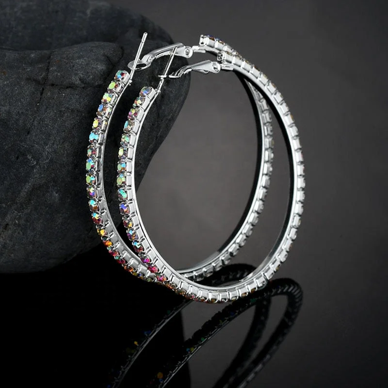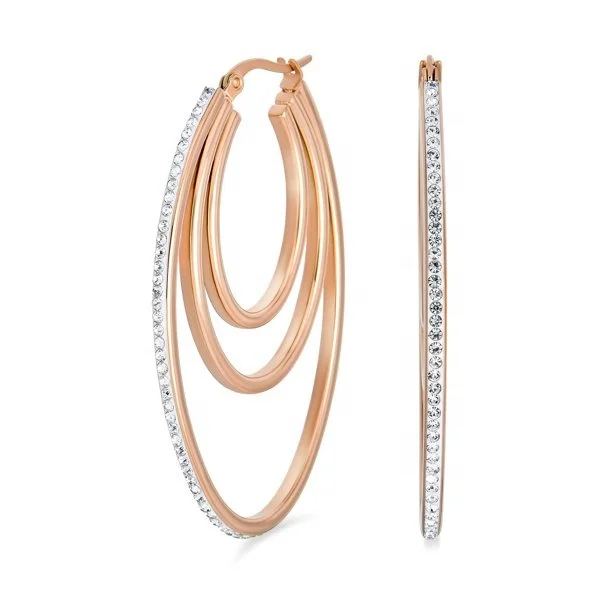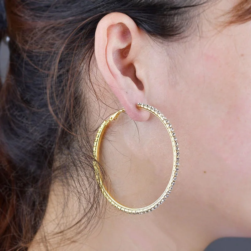 Fashion Gold Plated Jewellery Cubic Zirconia Earrings Large Hoop Stainless Steel Big Diamond Hooped Earrings for Women Wholesale