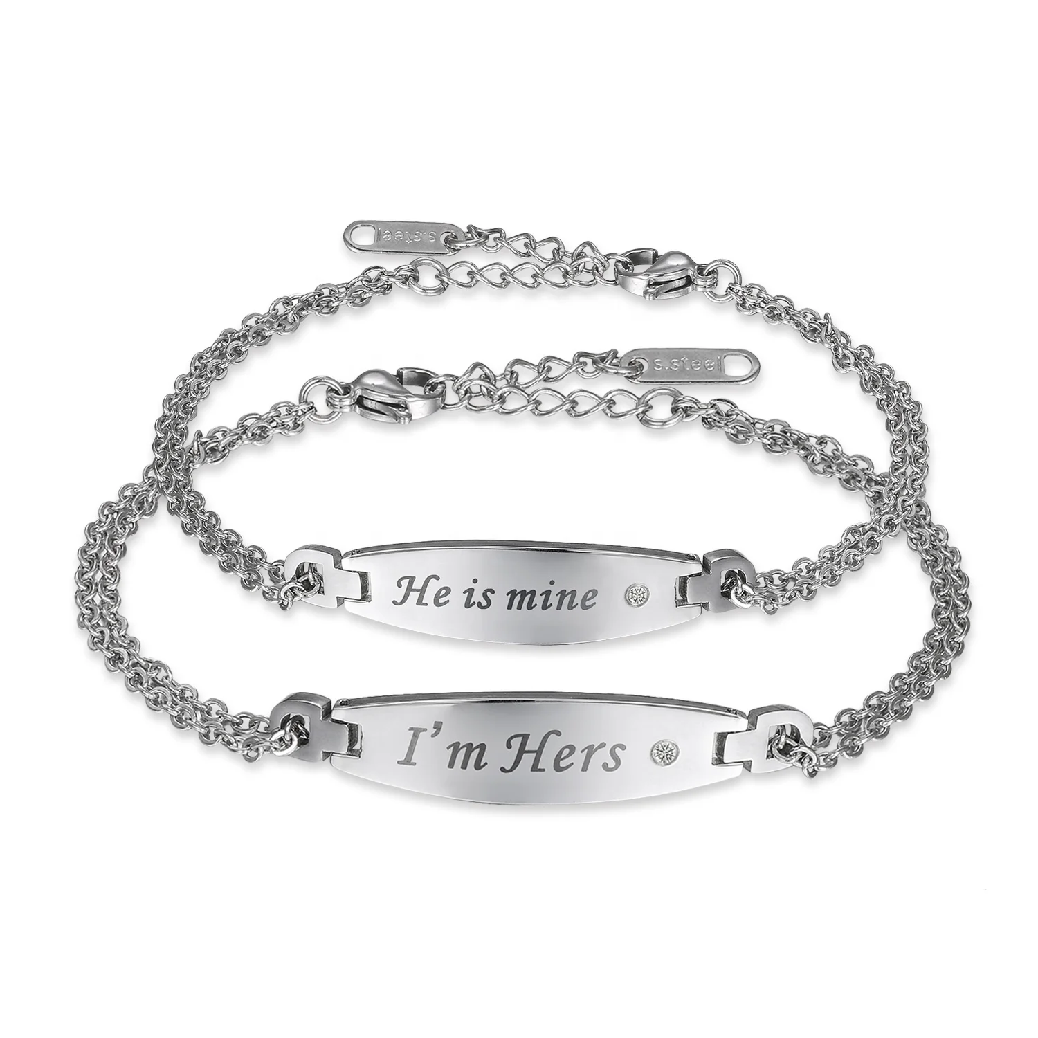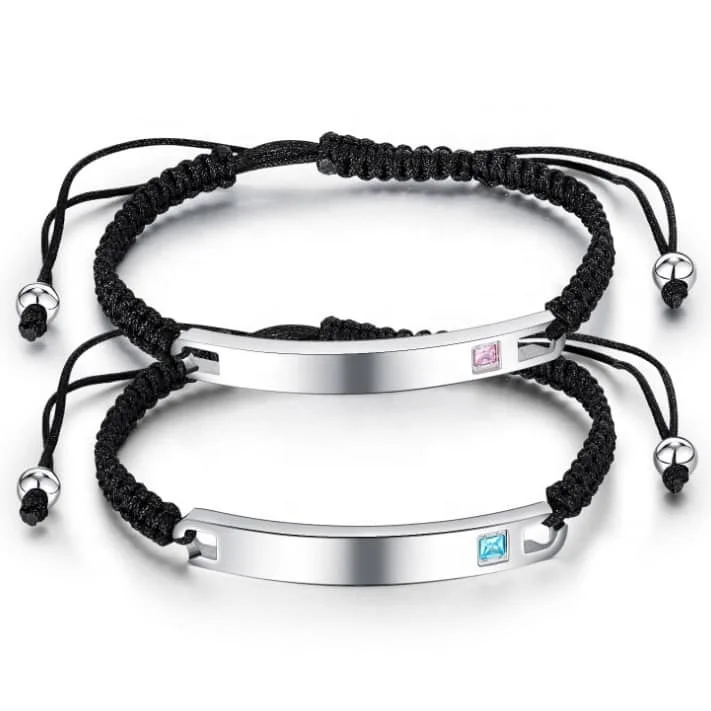 Manufacture Design Jewelry High Quality 925 Sterling Silver Personalized Engraving Wrap Leather Couple Bracelet
