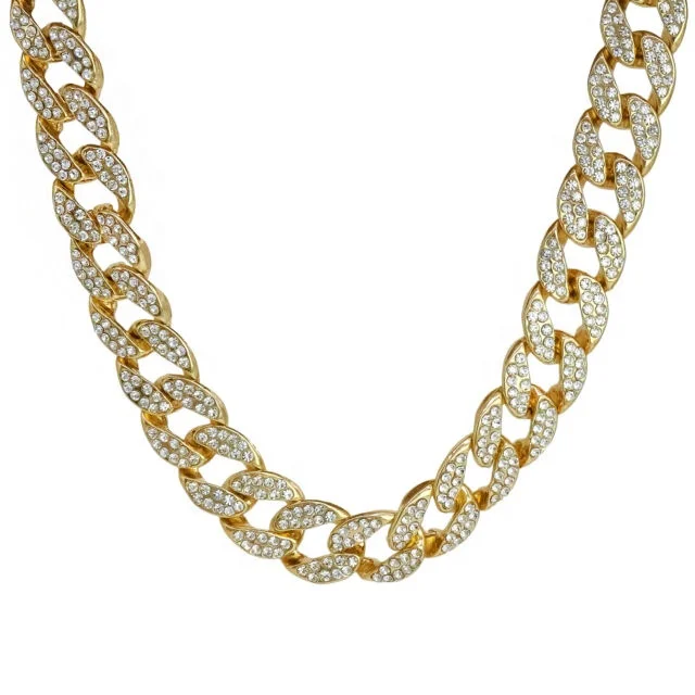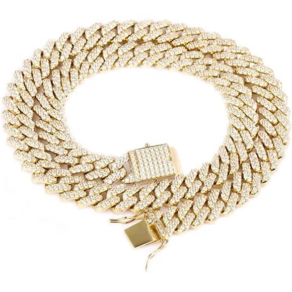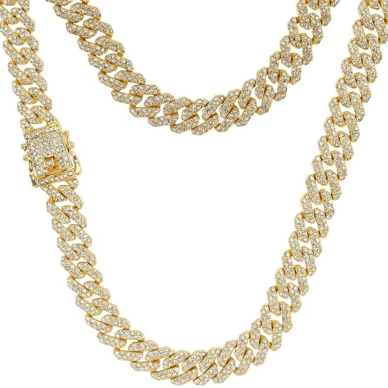 Fashion 8/12/14/15/18mm Hip Hop Iced Out Jewelry Cuban Link Chain Gold Plated Stainless Steel Iced Out Jewelry Chain
