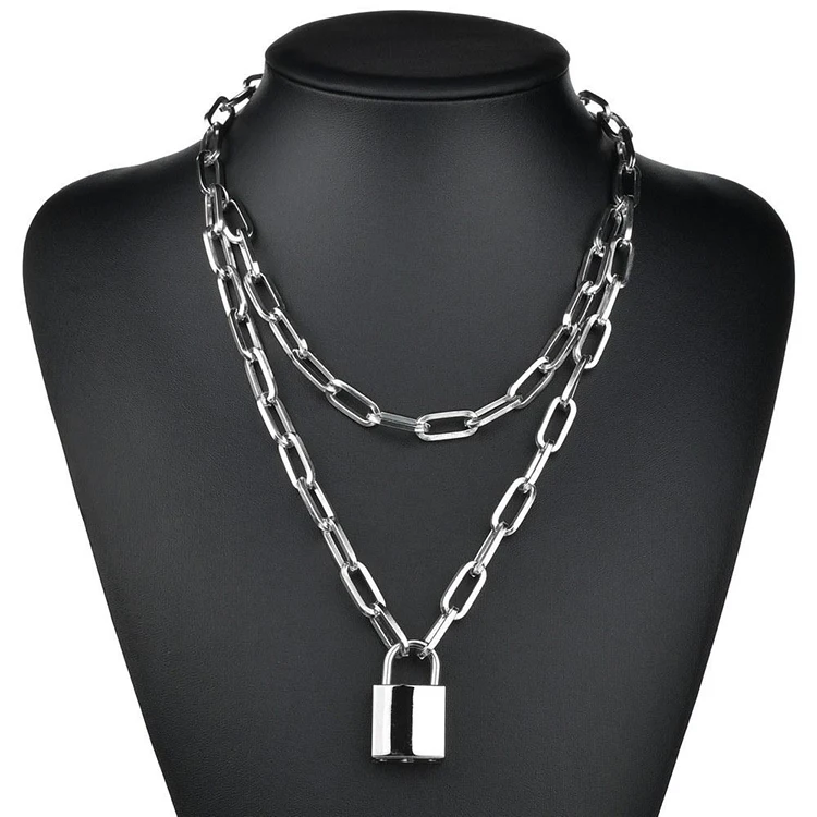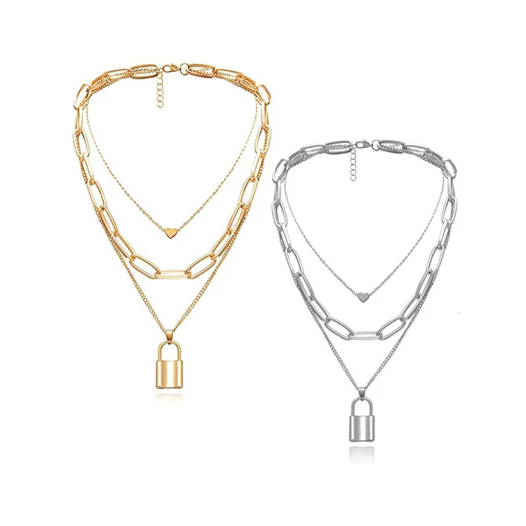 New Multi-Layer Creative Love Heart Chain Locket Alloy Pendant Necklace Chain Gold Long Lock Necklace for Men Women