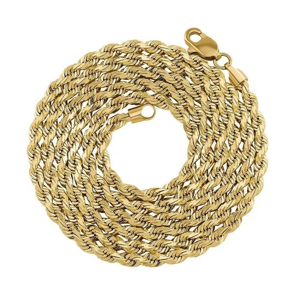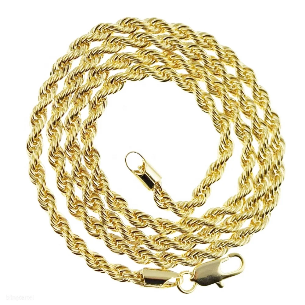 Custom Full Custom Stainless Steel Hip Hop Jewelry Link Necklace 14K Gold Plated Twisted Rope Chain for Gift