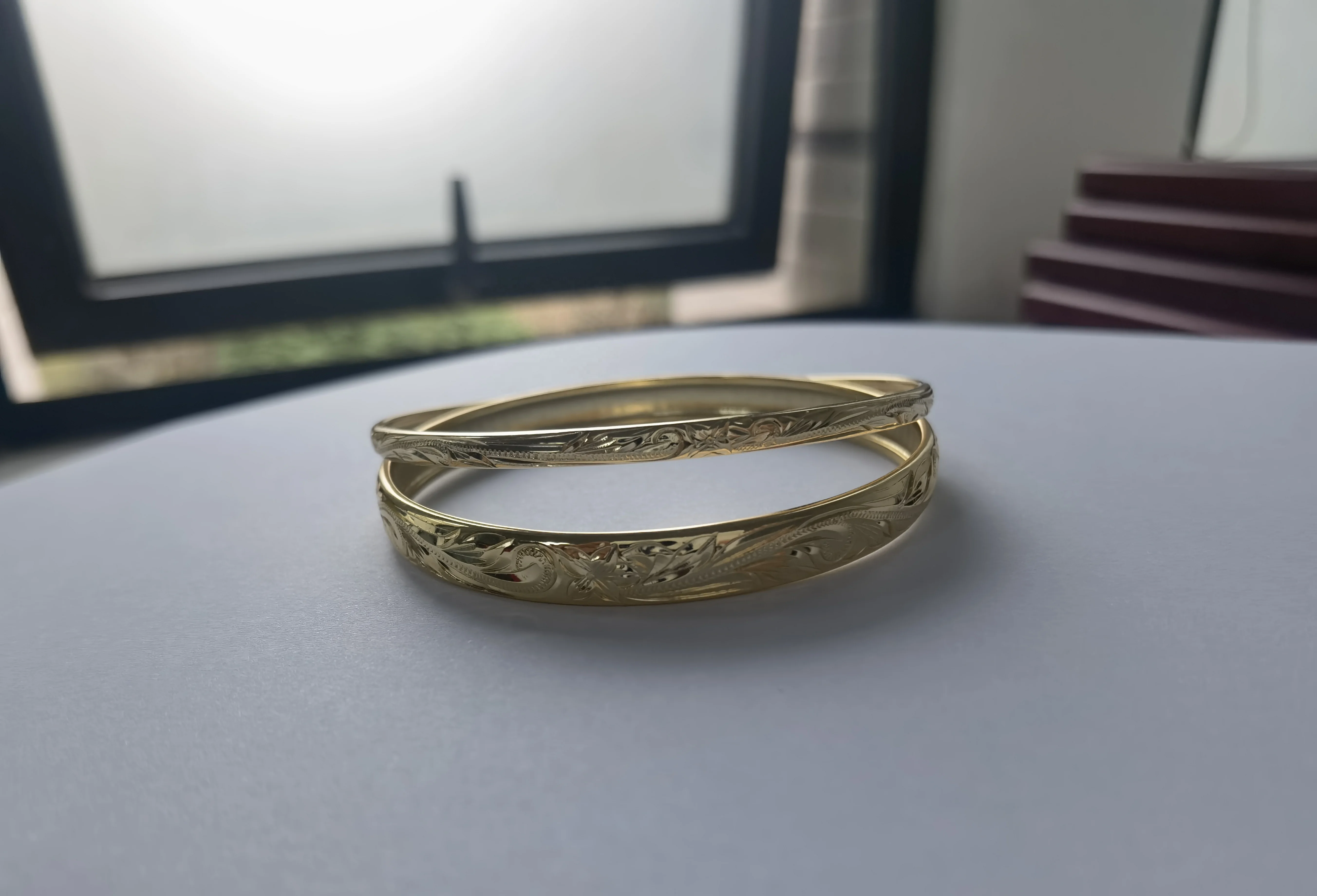 Handmade Engraving Hawaiian Plumeria Bangle Bracelet Small Moq 925 Sterling Silver Gold Plated 8mm Bracelet Bangle