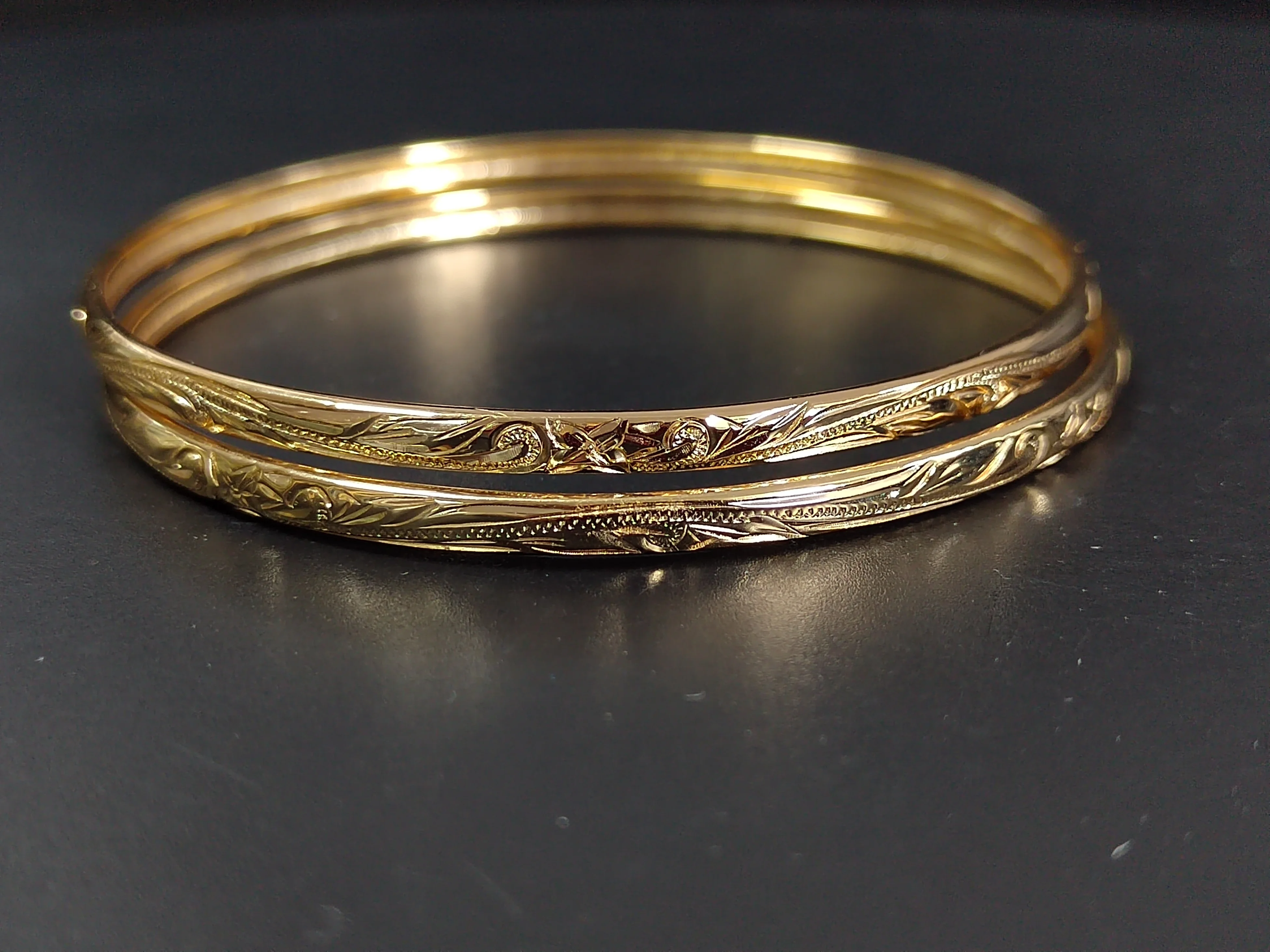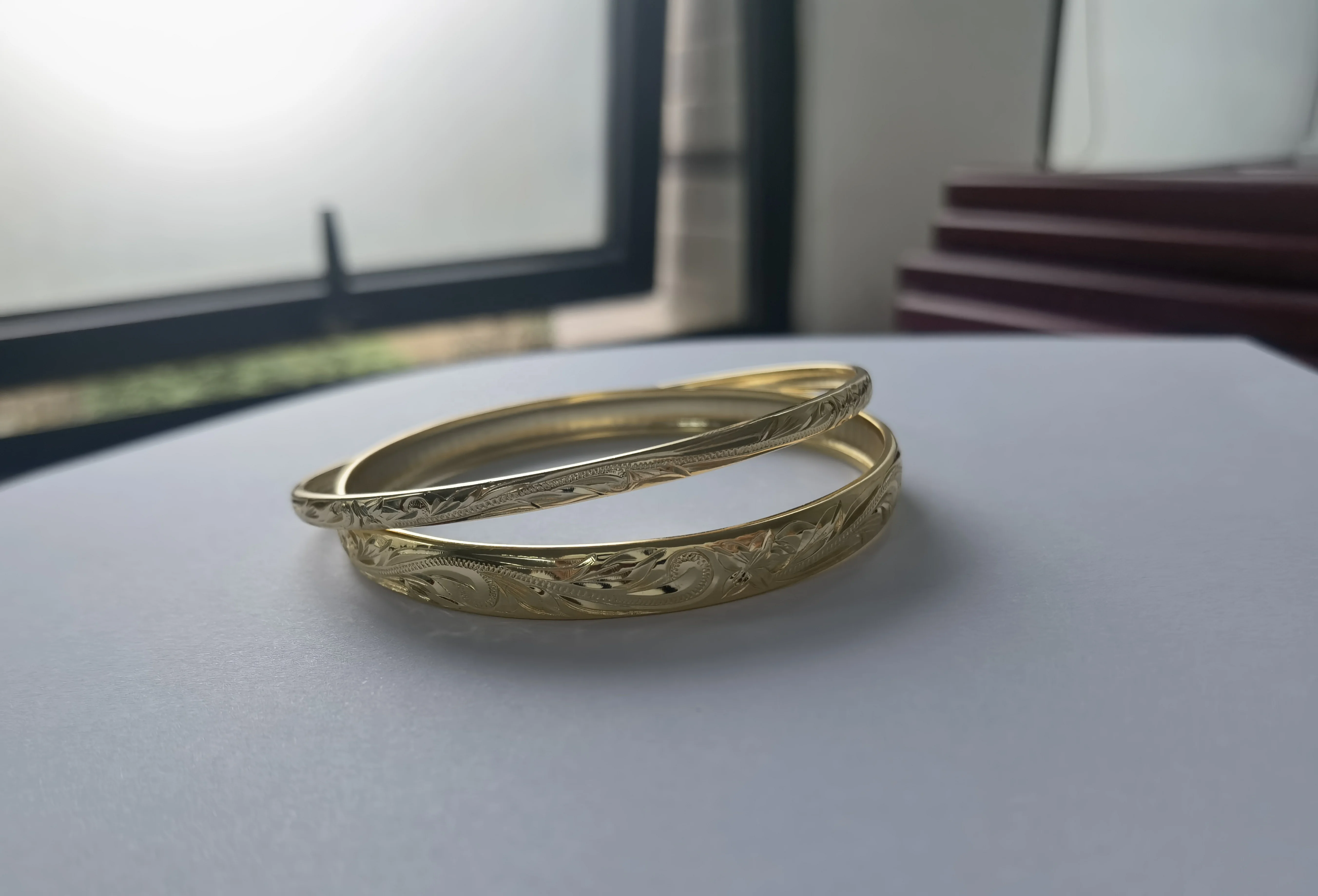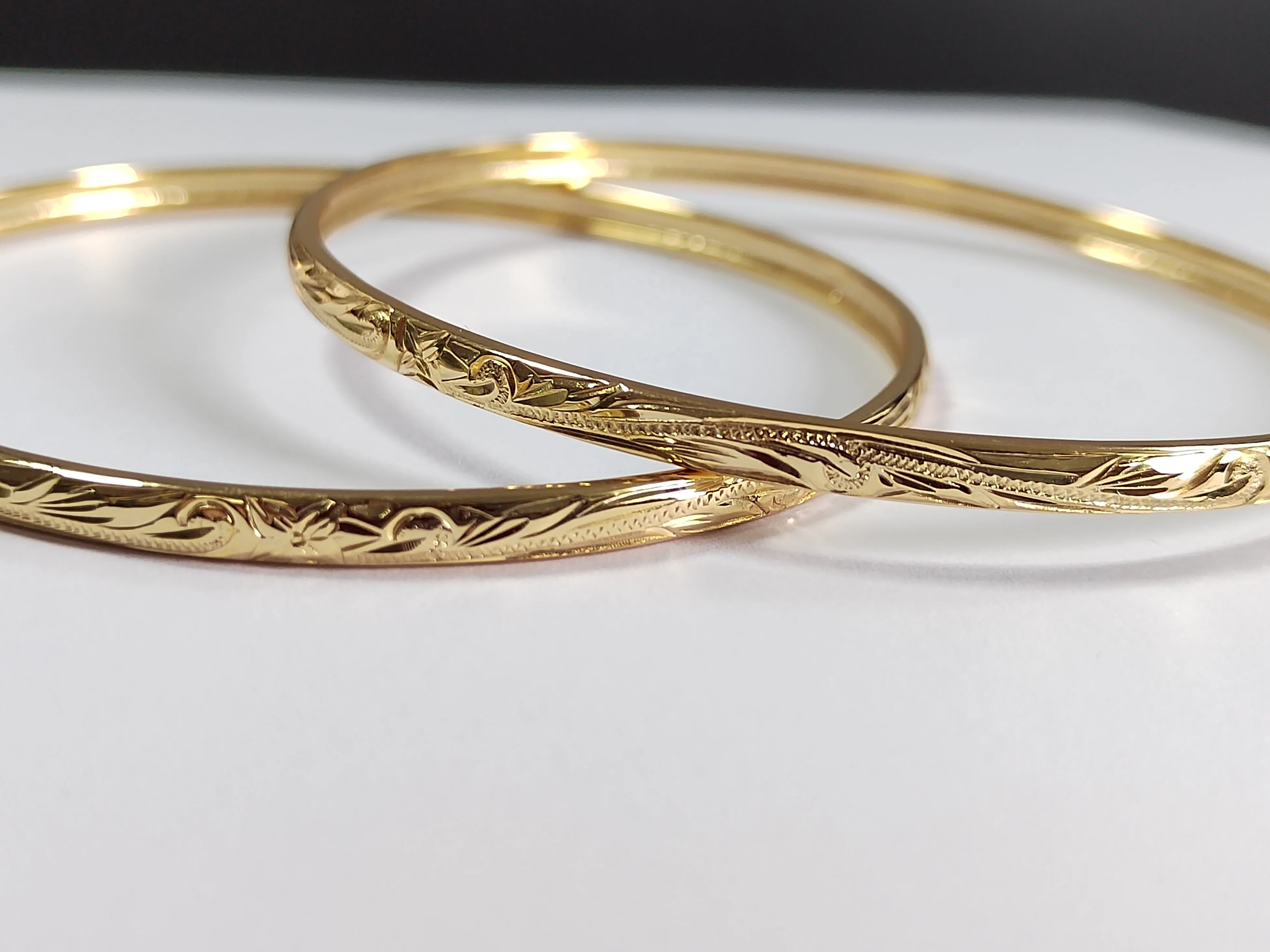 Stock Bangle Bracelet 4mm Handmade Engraving Hawaiian Plumeria Jewelry 925 Sterling Silver Real Gold Plated Bangle