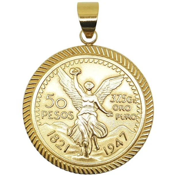 Custom Manufacturer High Quality Gold Plated Engraved Centenarios Pendant