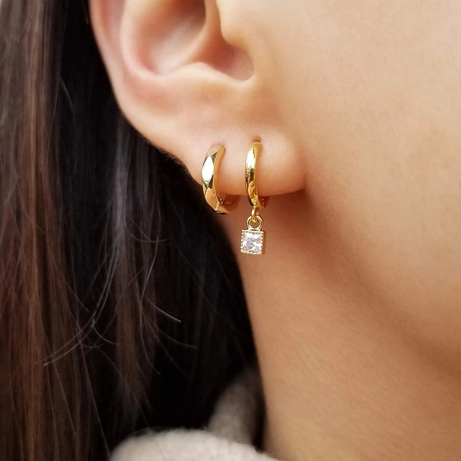 Hot Sale Simple Huggie Cubic Zirconis Gold Plated Jewellery Brass Small Hoop Earrings Fashion Jewelry Earring Hoops for Women