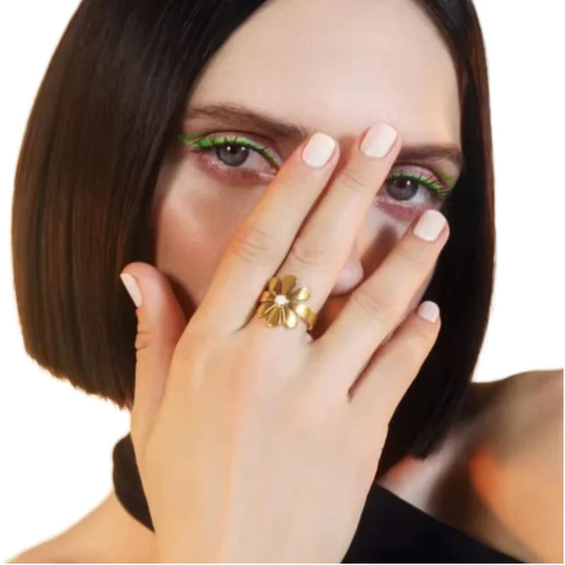 Enamel Gold Plated Girls Jewelry Fashion Flower Rings for Women