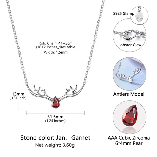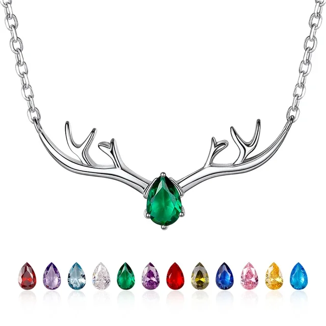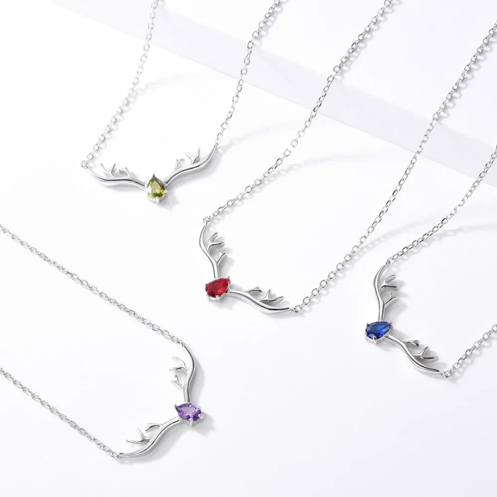 Custom Deer Necklace with Birthstone Crafted 925 Sterling Silver Necklaces for Women