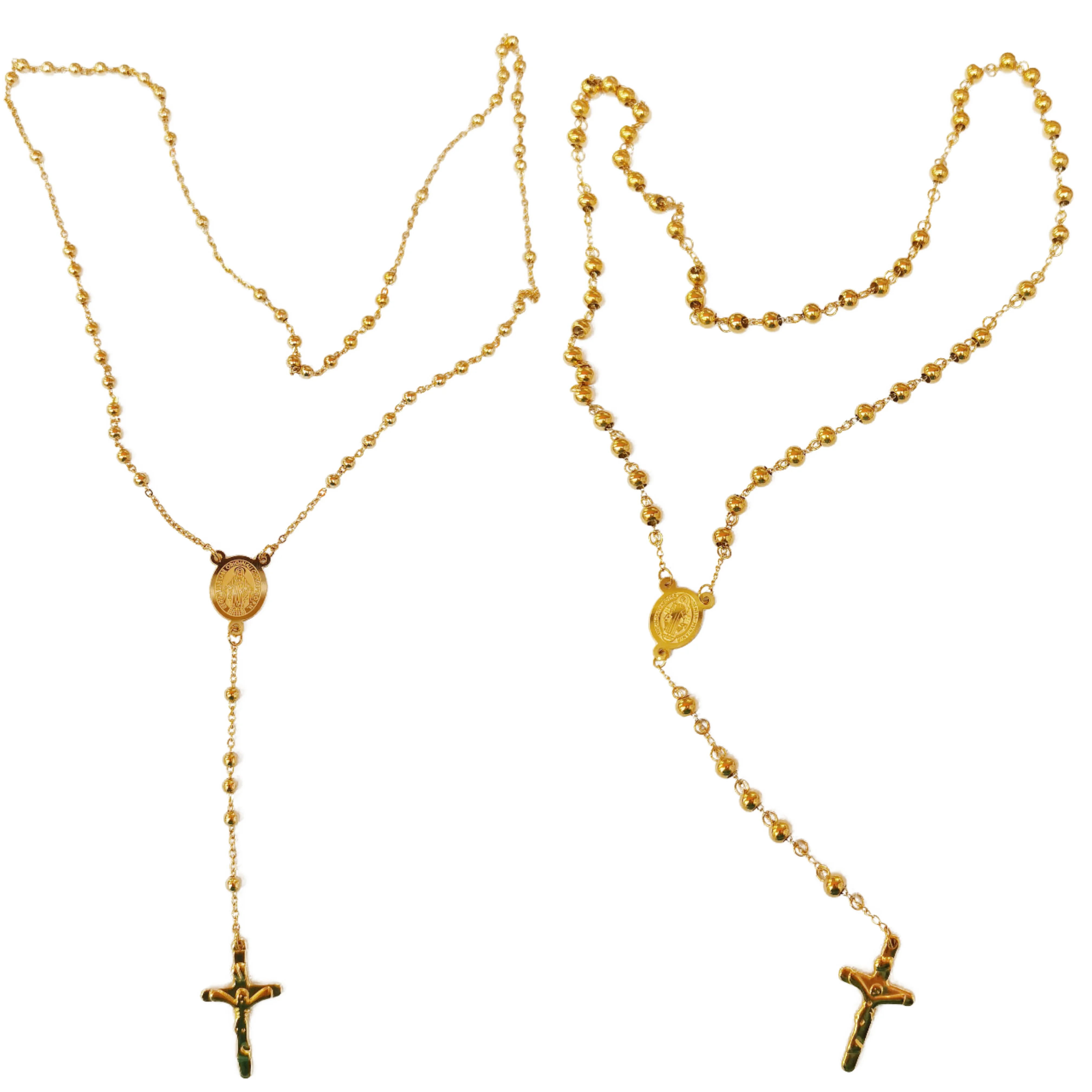 Customized Golden Collar Chain, Stainless Steel Round Bead Necklace, Cross-shaped Jewelry, Best-selling Accessory, Sweater Chain