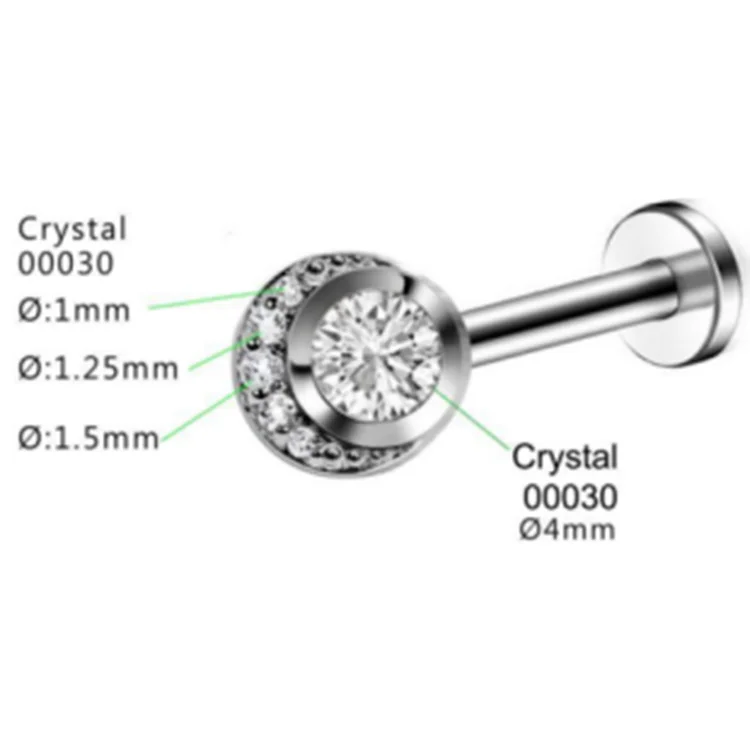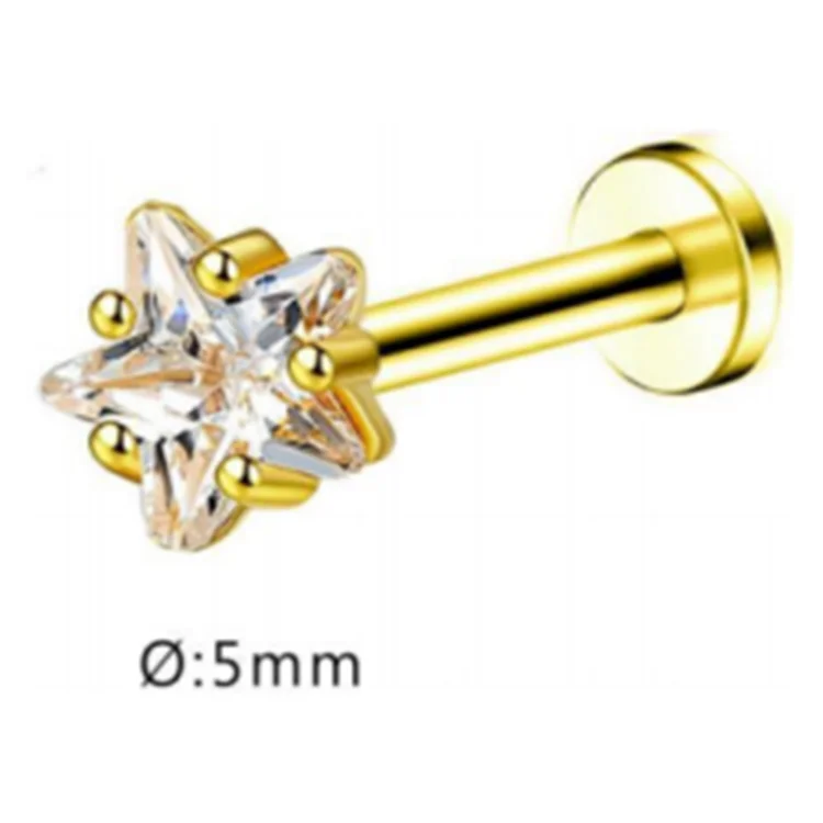 Threaded Body Jewelry G23 Titanium Zircon Diamond 14k Gold Plated Cartilage Earrings Piercing Labret Stud Jewelry