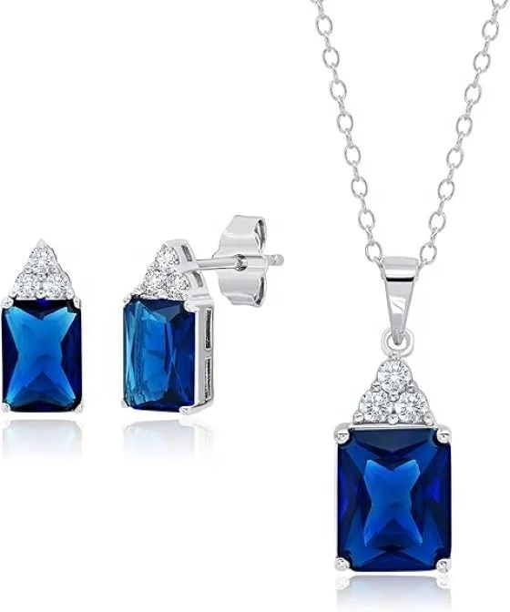 Wedding Jewelry Sets for Women , Sapphire Cz Necklace Earring Set, Sterling Silver Jewelry Set