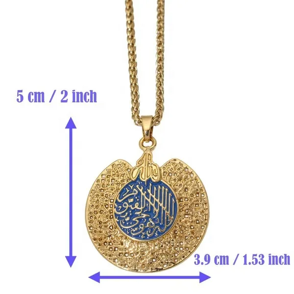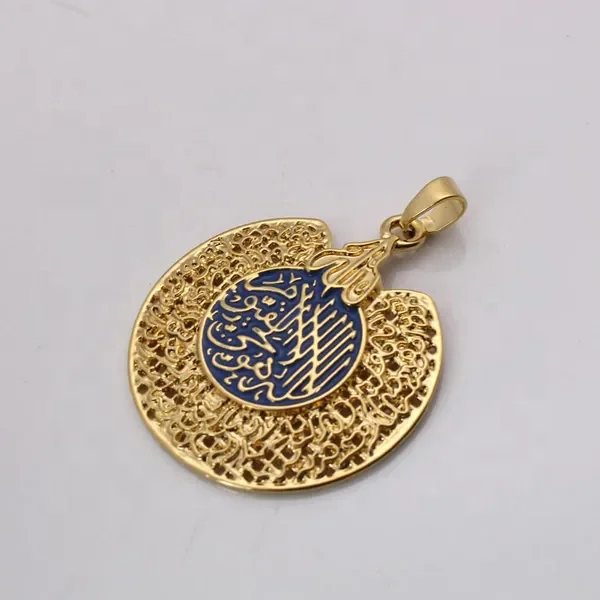 High Quality Real Gold Plated Pendant Enamel Fashion Jewelry Custom Ayatul Kursi Pendant for Women