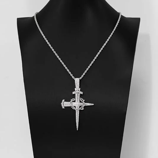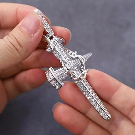 Custom Silver 18k Gold Moissanite Sword and Heart Necklace