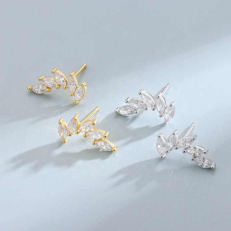 High Quality Women Jewelry White Cubic Zircon Gold Plated 925 Sterling Silver Stud Earrings