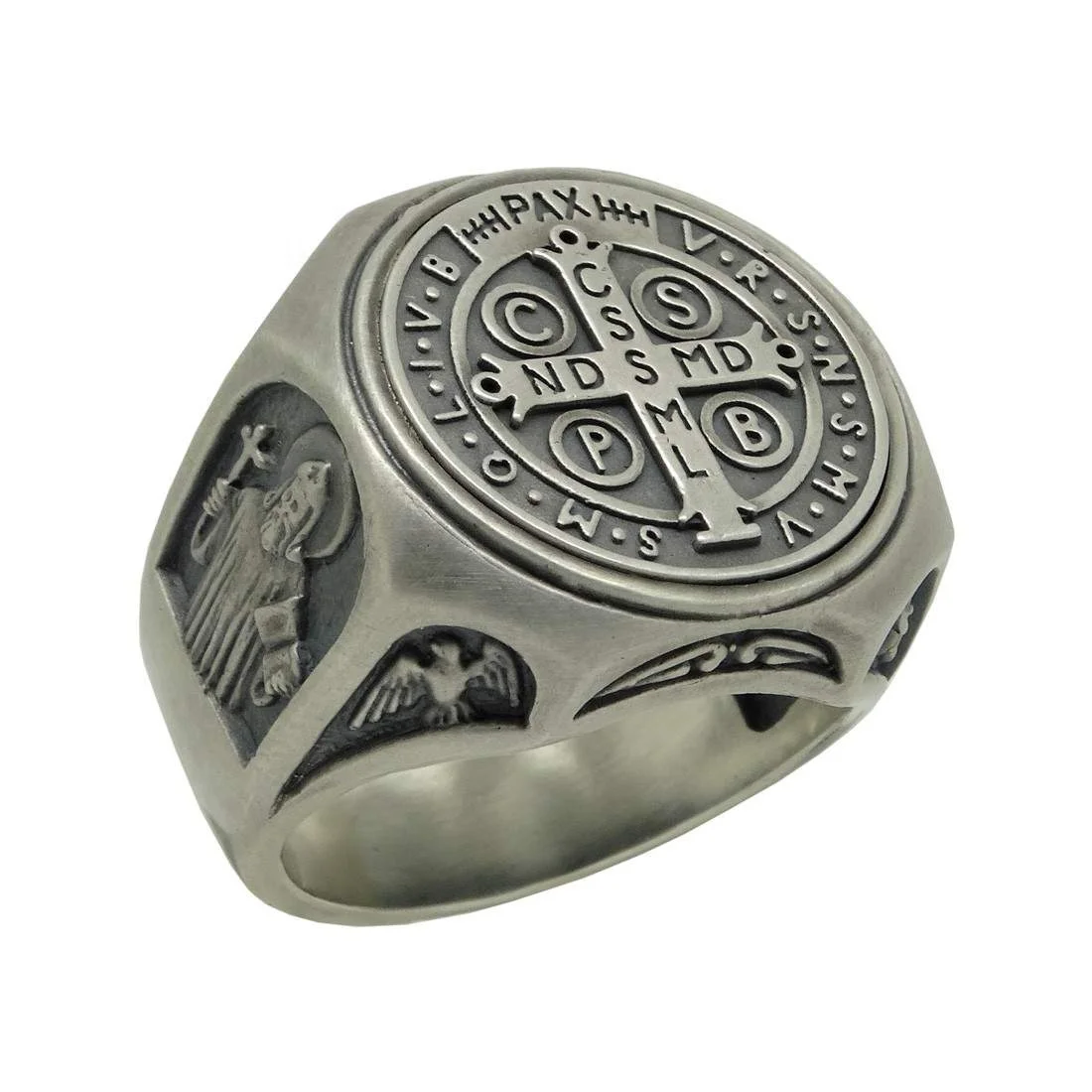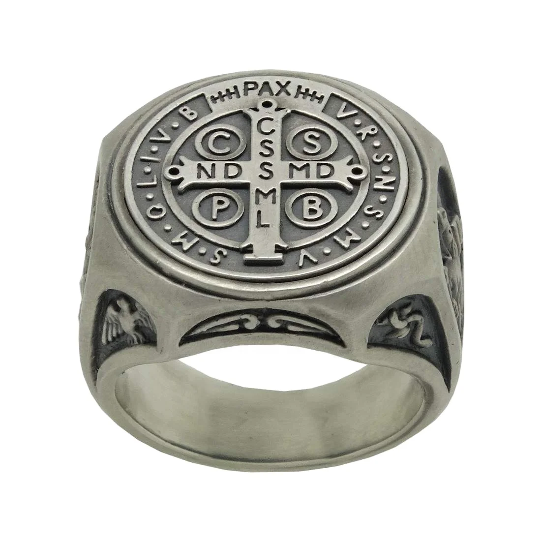 Custom Jewelry Manufacture 9225 Sterling Silver Vintage Cross Oxidized Old Silver Men Jewelry Religious Rings