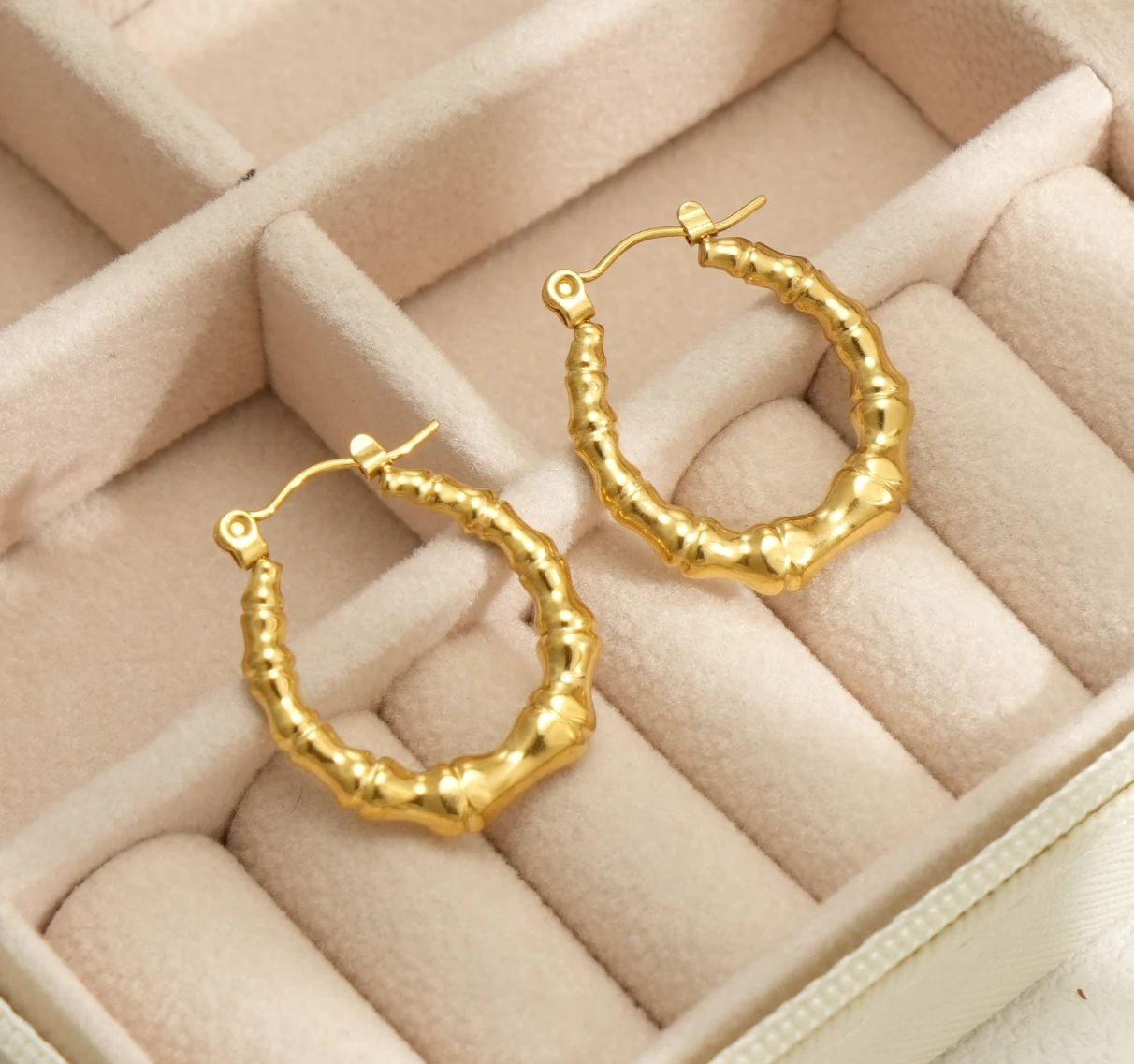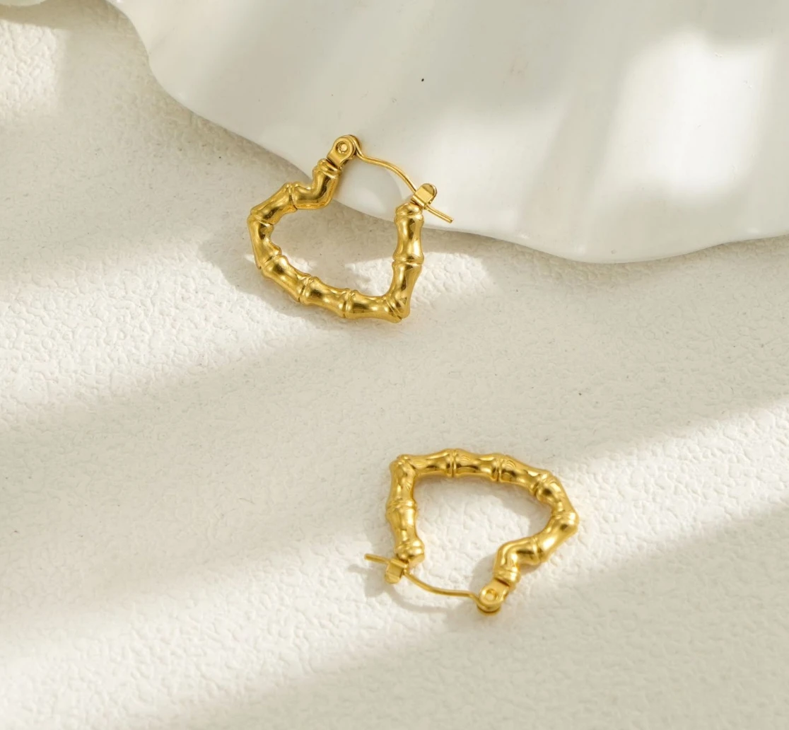 Fashionable Women 18 k Gold Plated Jewelry Custom Twisted Hoop Bamboo Earrings Gold Plated Stainless Steel Earrings Custom