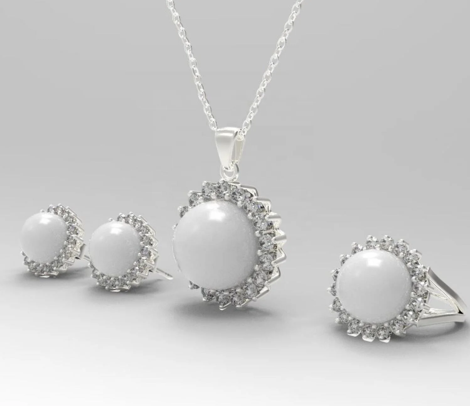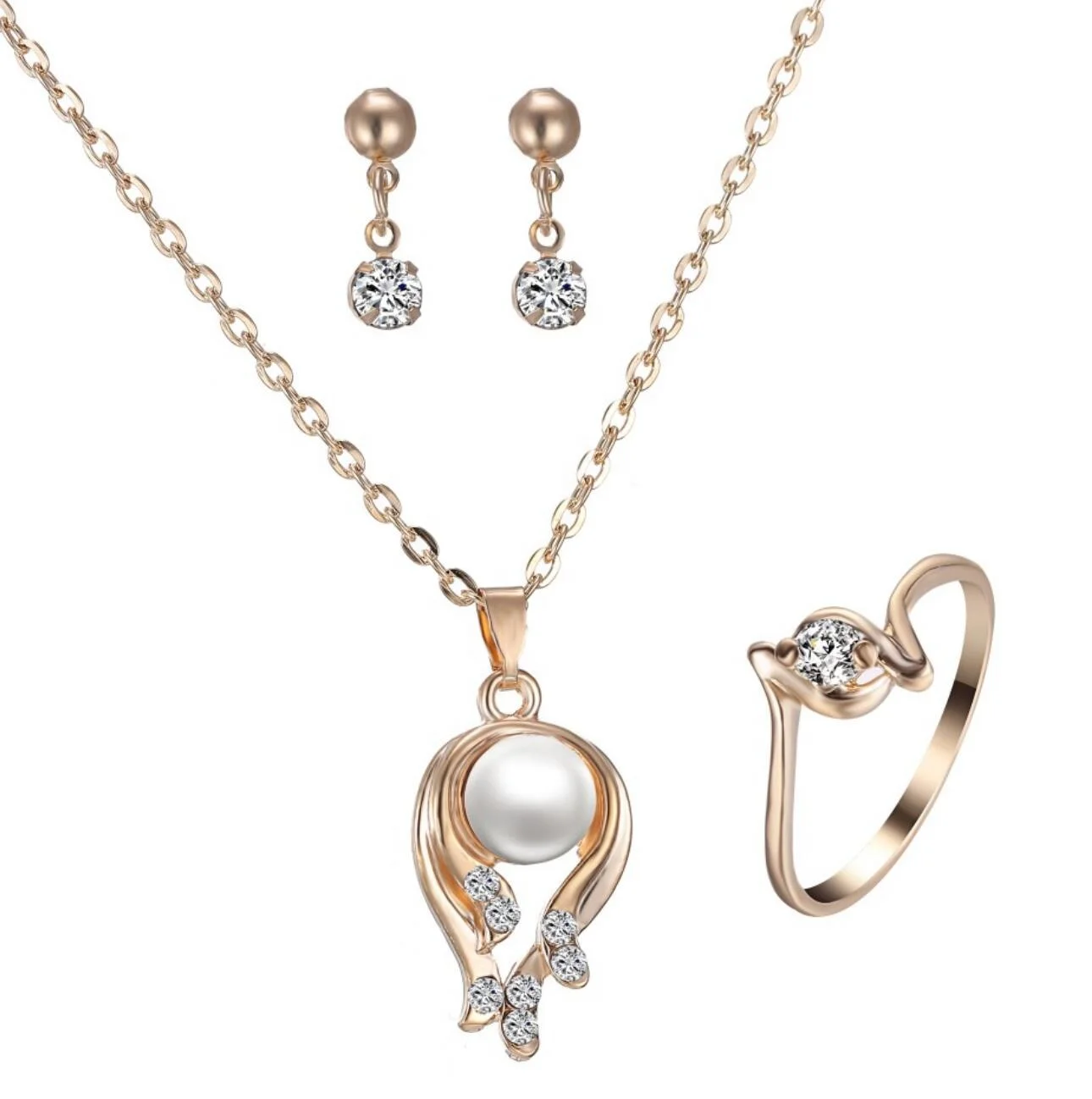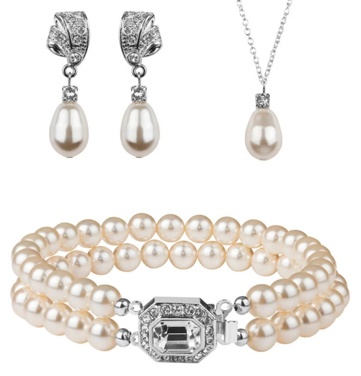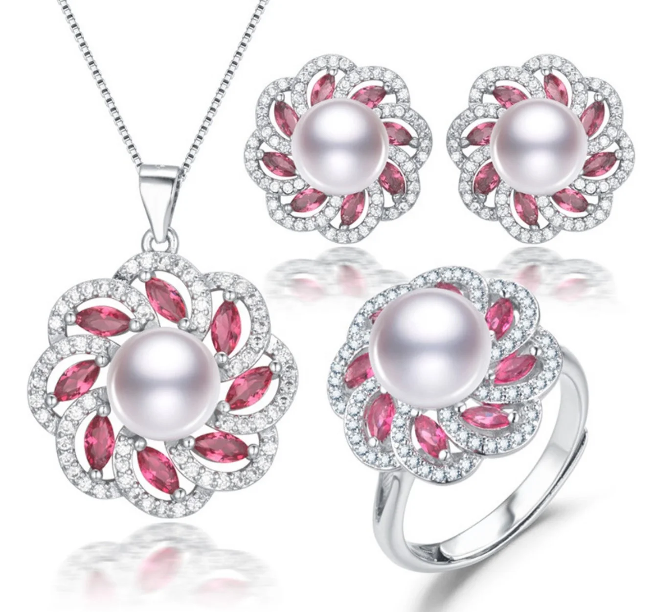 Silver 925 Freshwater Pearl Necklace Earring Set Cubic Zirconia High Quality Jewelry Necklace Earring Set