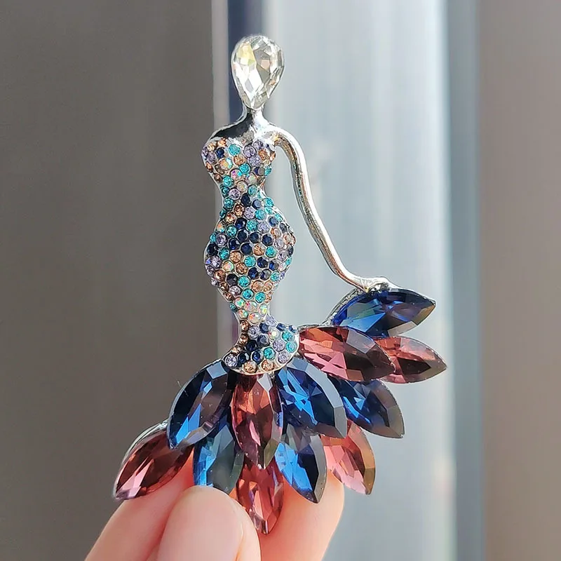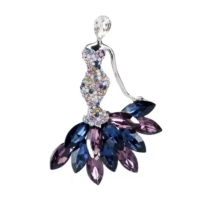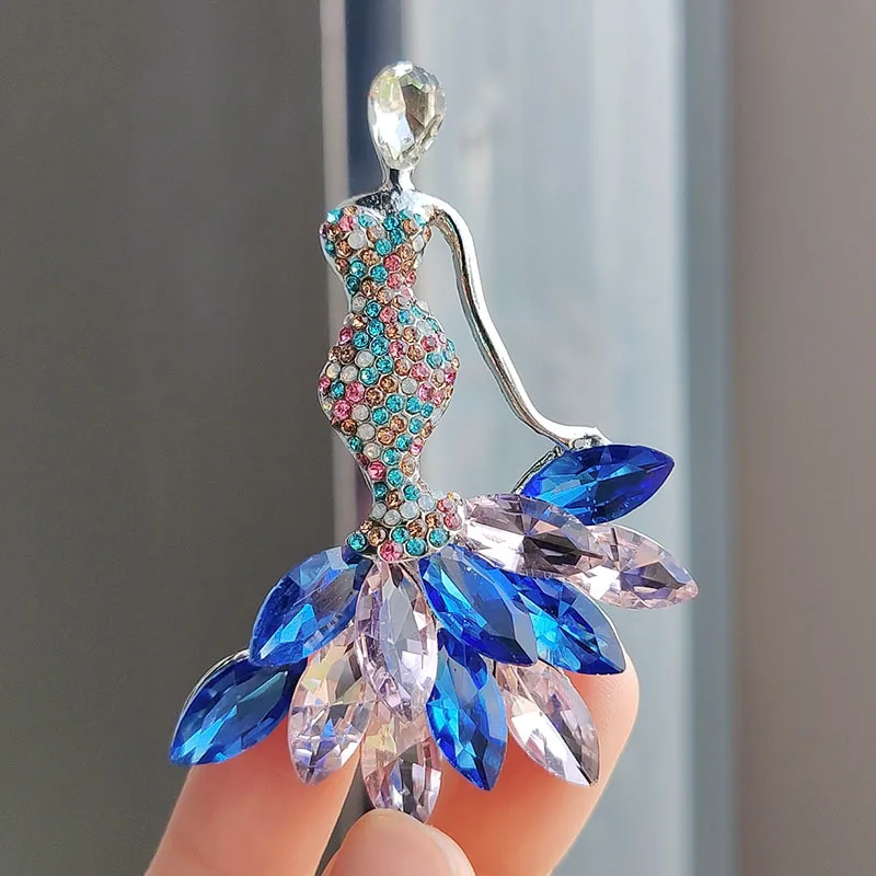 Sexy Lady Girl Brooches Silver Color Jewelry Shiny Crystal Luxury Crystal Korean Pin Brooch for Women