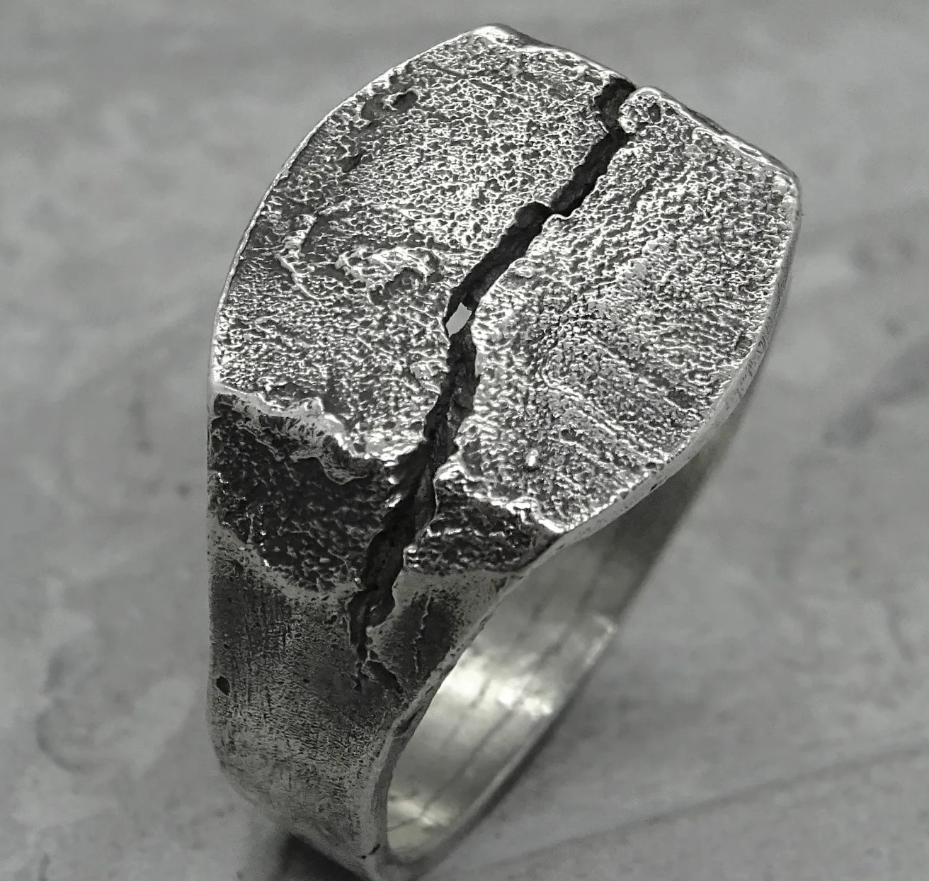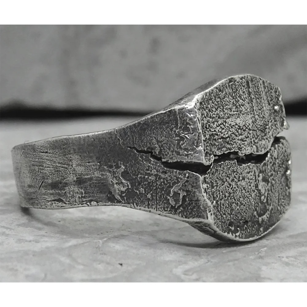 Textured Broken Style Silver Ring Adjustable Unisex Statement Minimalist Punk Jewelry Handmade Custom Retro Fashion Design