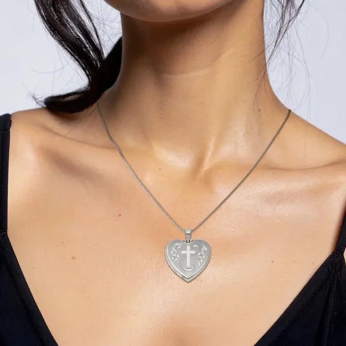 Silver Pendant Necklace 925 Sterling Silver Jewelry for Women Custom Initial Heart Locket Religious Cross Charm