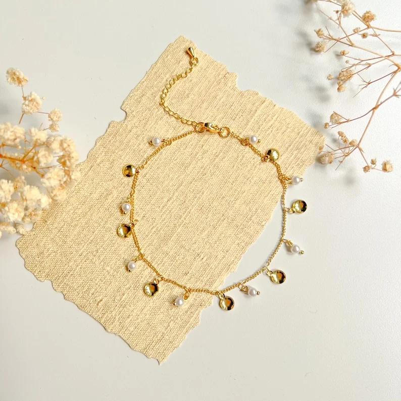 Fine Anklets Gold Silver Chain Link String Pearl Crystal Adjustable Dainty Layered Fashion Jewelry for Women Beach Daily Wear