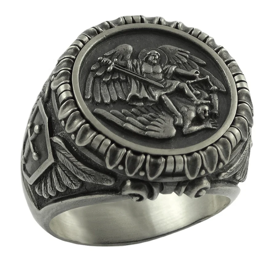 Custom Popular Engraved Signet Fashion Cross Old Silver Knight Templar Men Ring Jewelry
