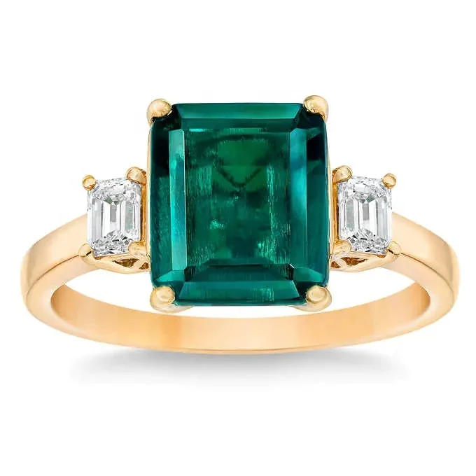Full Custom Gold Plated Jewellery Female Ring Sterling Silver 925 Jewellery Gold Emerald Ring