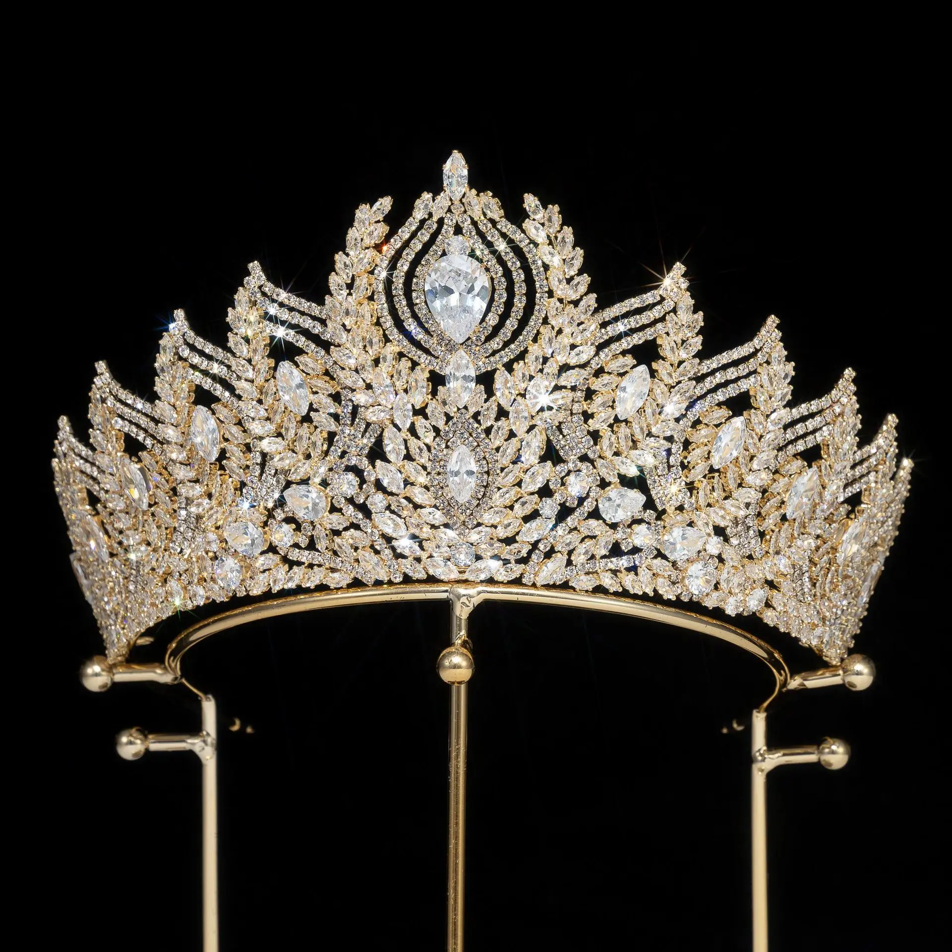 Customized Fine Jewelry Luxury Zircon Metal Queen Crown Tiara Wedding Crown for Women Girls