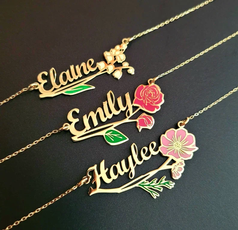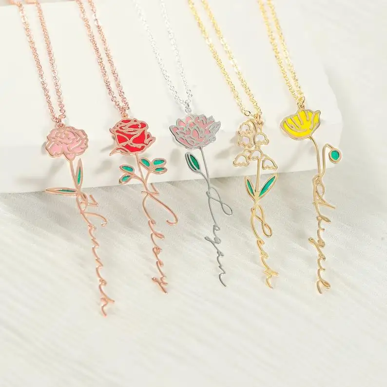 Fashion Women Jewelry Real Gold Plated Enamel Flower Moth Pendant Moth Custom Birth Flower Necklace