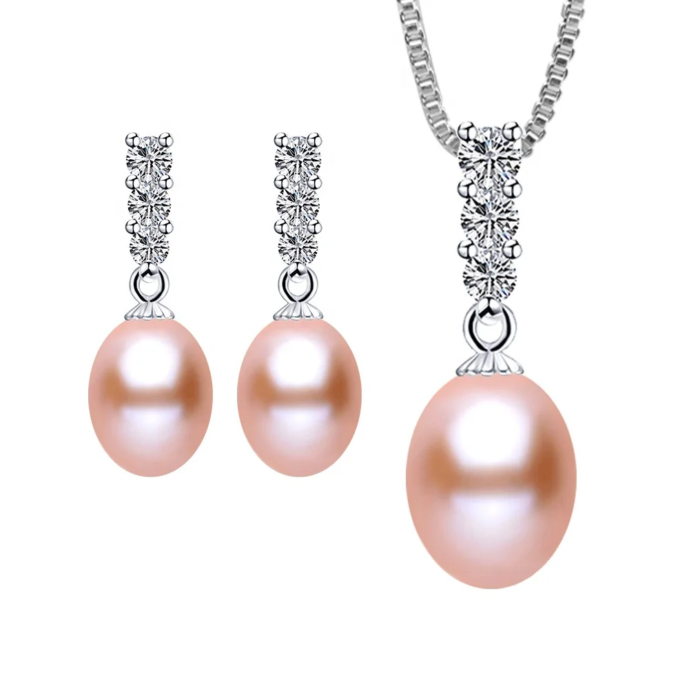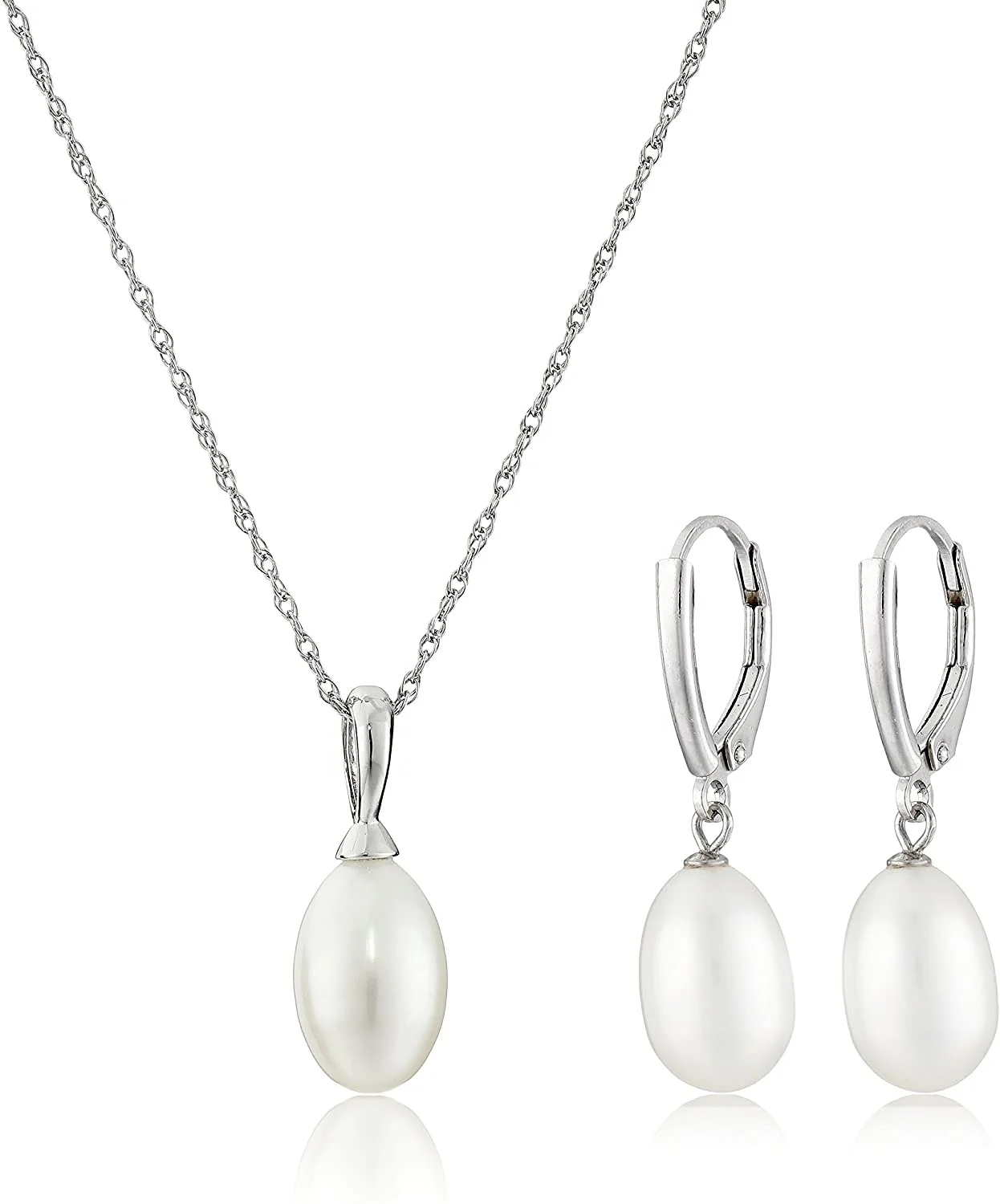 Full Custom Women Pearl Jewelry Set Minimalist Pearl Drop Earrings Necklace Set